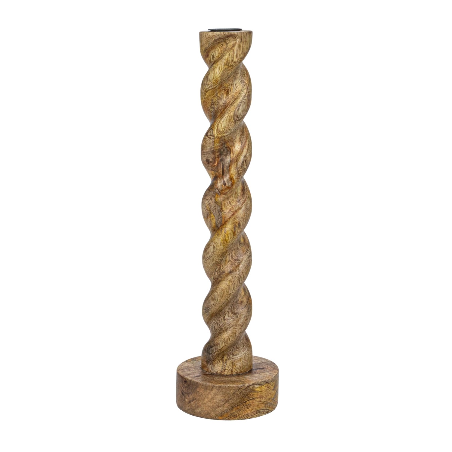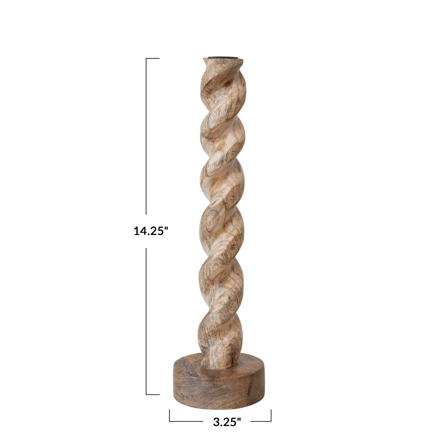 Catalog Name: 3-1/4" Round x 14-1/4"H Carved Mango Wood Twisted Taper Holder, Natural