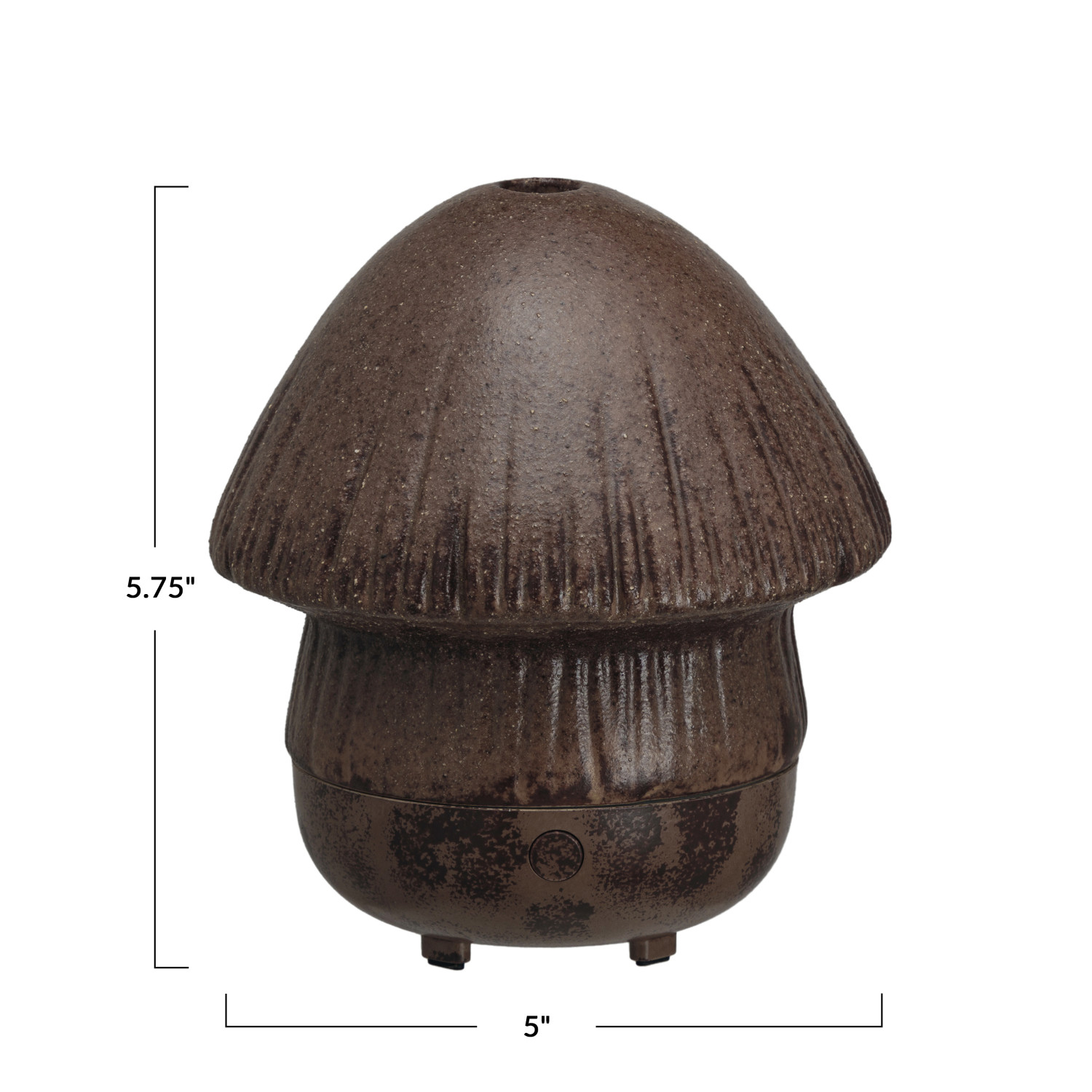 Catalog Name: 5" Round x 5-3/4"H Textured Stoneware Mushroom Shaped Oil Diffuser w/ 1-3 Hour Timer, Reactive Glaze, Brown (Each One Will Vary)