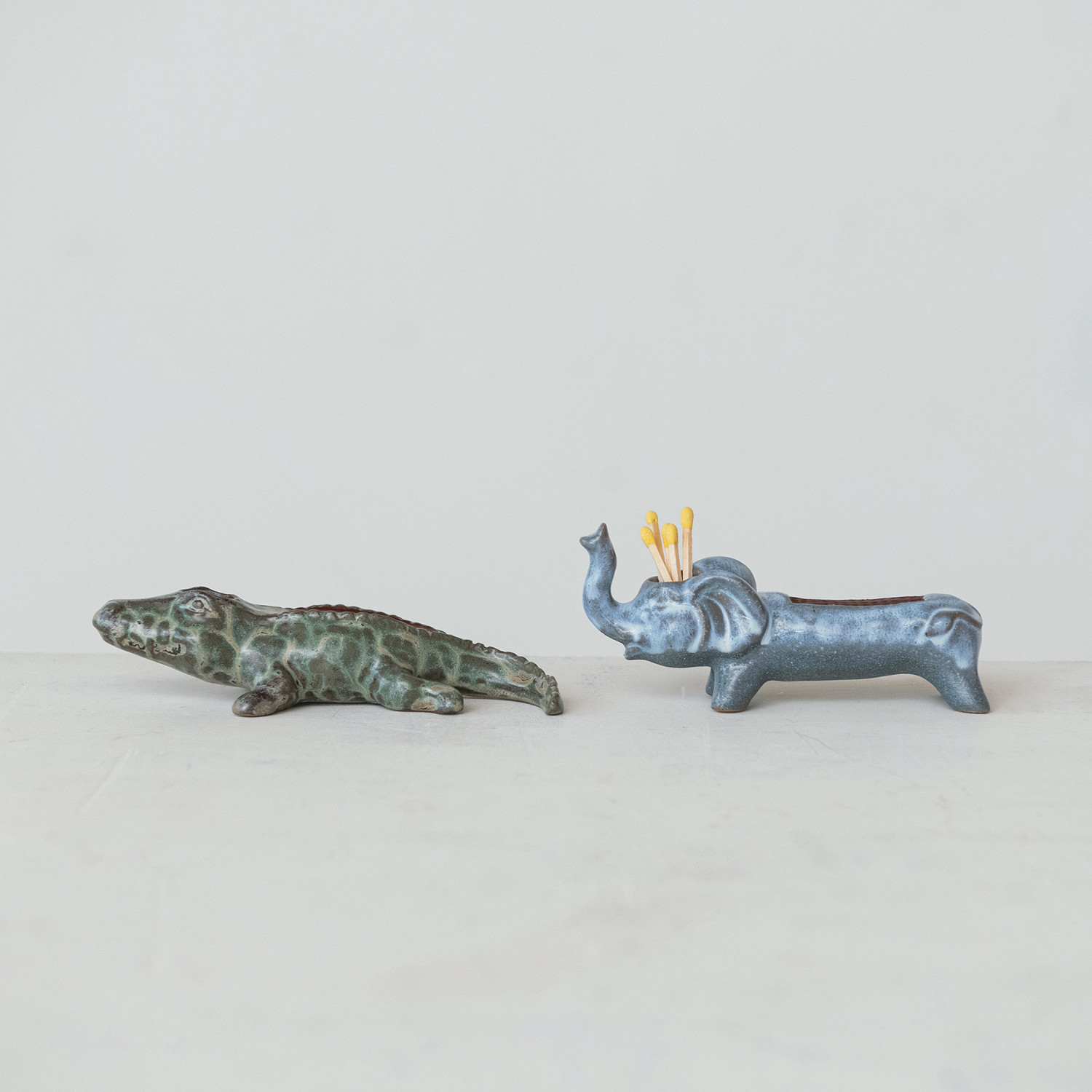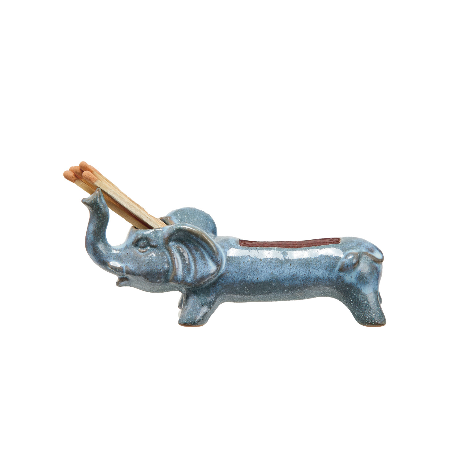Catalog Name: 5-3/4"L x 1-3/4"W x 2-1/2"H Stoneware Elephant Match Holder w/ Striker, Reactive Glaze, Grey (Each One Will Vary)