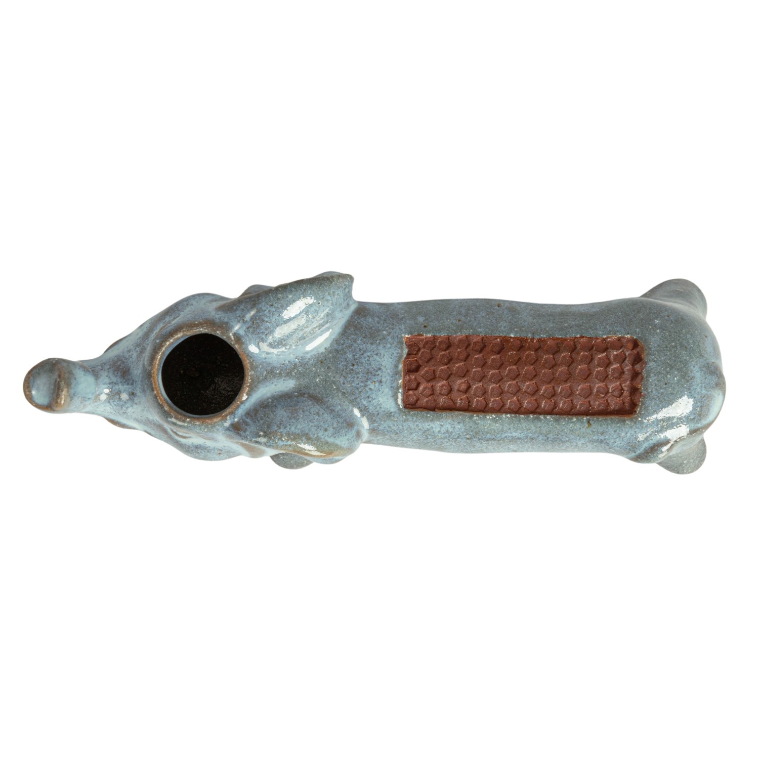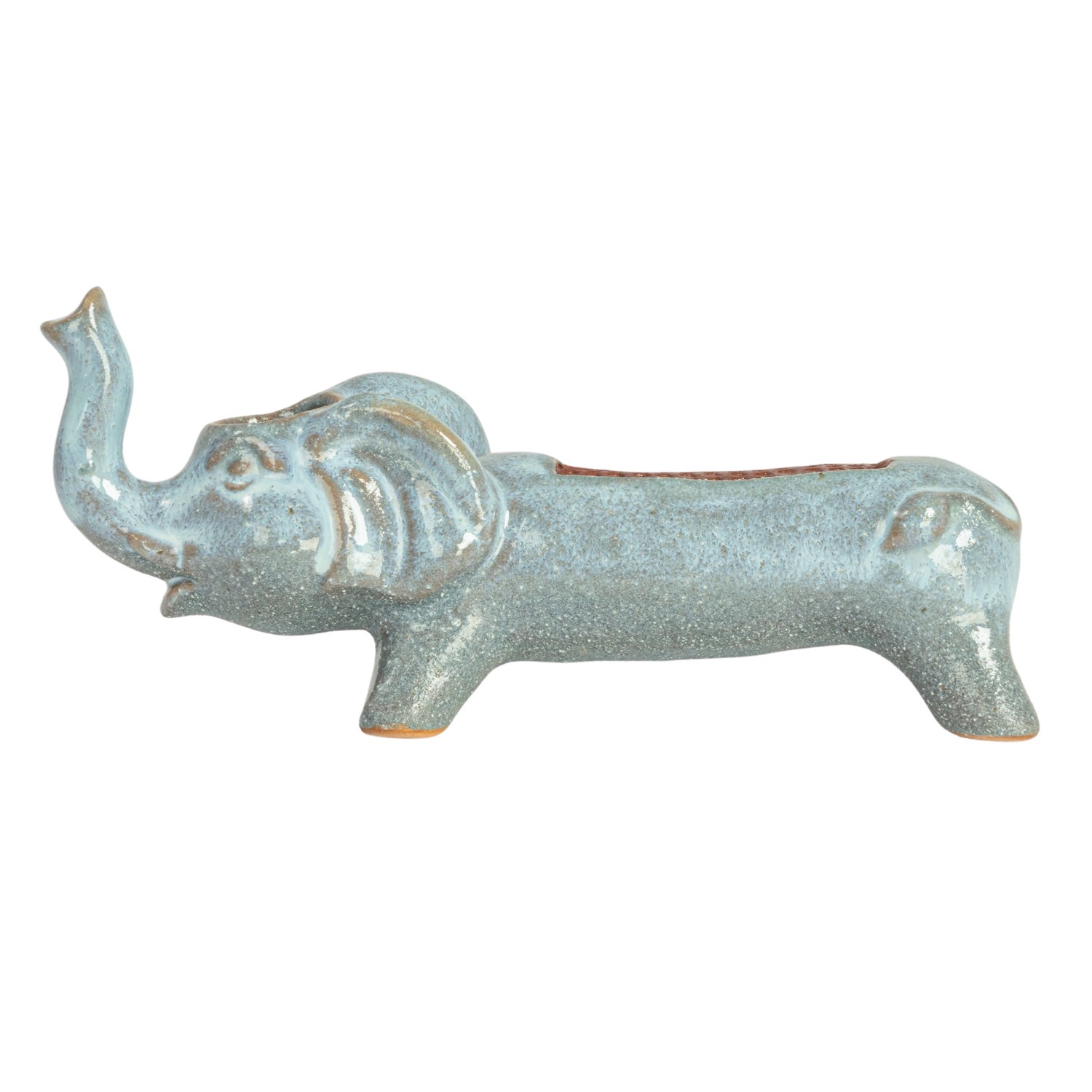 This Stoneware Elephant Match Holder with a striker is a blend of functionality and artistry. The reactive glaze in grey tones ensures that no two holders are exactly alike, while the elephant's design adds a noble flair. It's not just a match holder; it's a statement piece that fits well within a variety of decor styles, from the nautical to the rustic. It measures 5.75 inches in length, 1.75 inches in width, and 2.5 inches in height, making it compact enough for convenient placement. Its dimensions make it an unobtrusive yet noticeable addition to any room, ready to hold matches and spark conversations.