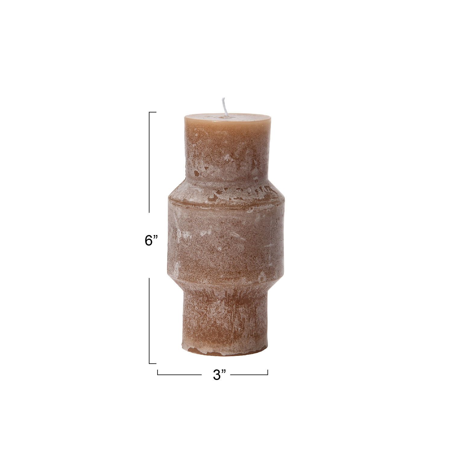 This intricately carved totem pillar candle showcases a striking sculpturesque design. Mix and match the hues and sculptural silhouettes of our artfully crafted totems and tapers for a refined candlelight arrangement on a dining table or mantelpiece.