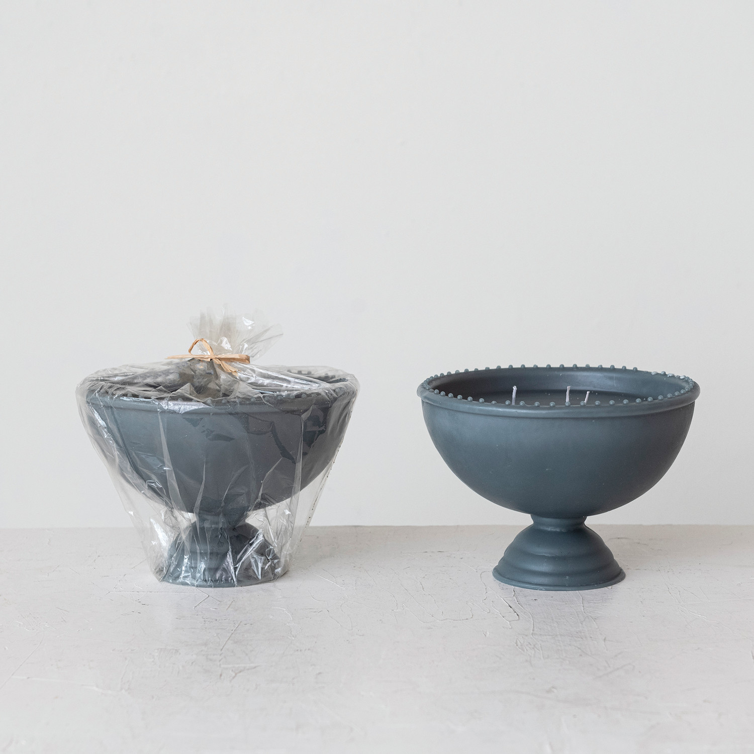 Catalog Name: 8-1/2" Round x 6-1/4"H Unscented Hobnail Edged Footed Bowl Shaped Candle w/ 3 Wicks, Teal (Approximate Burn Time 24 Hours)
