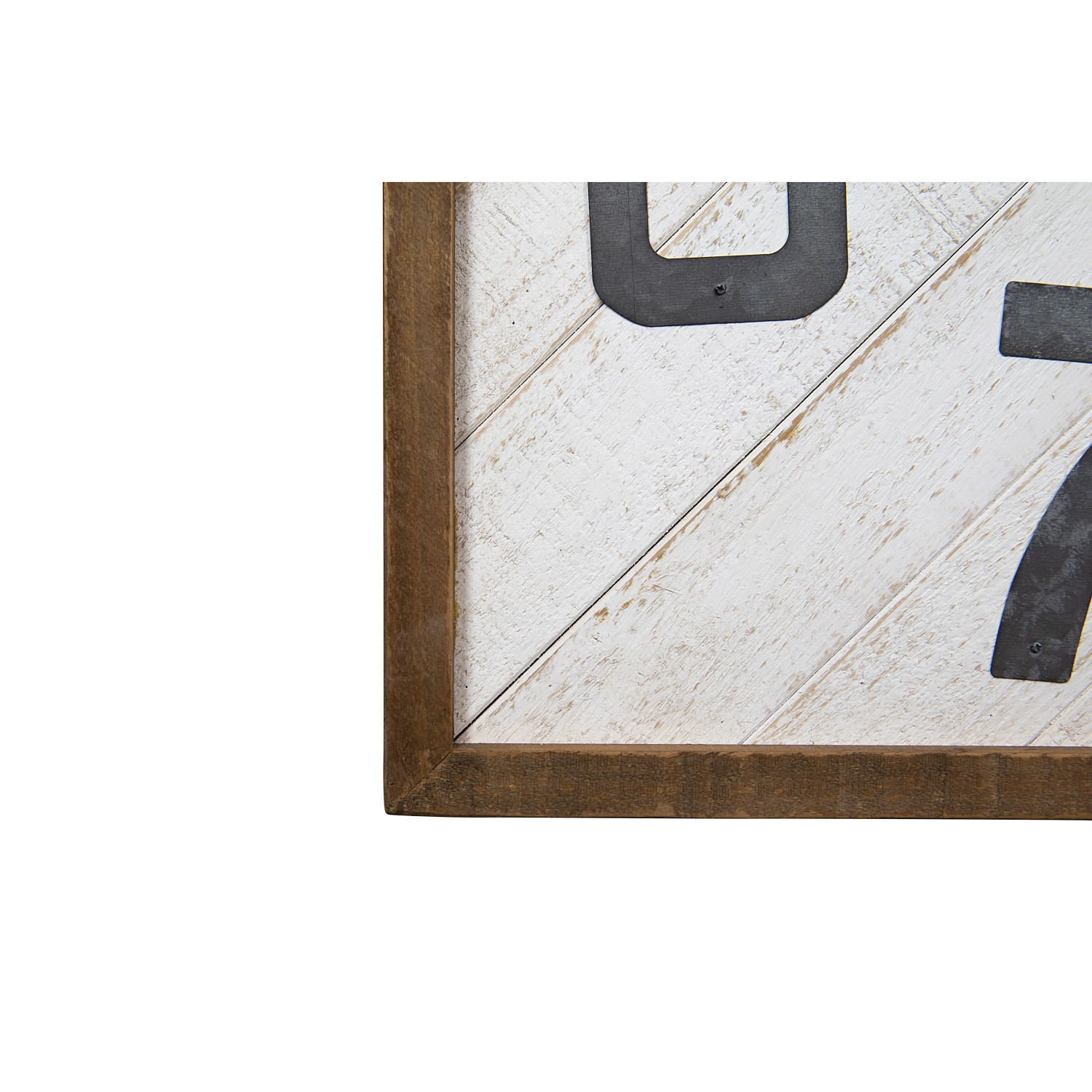 Featuring metal cut numbers over a gorgeous wood face, this clock shows creative individuality. Each number is cut to perfection and attached with matching metal screws. Adding even more character is a combination of distressed grey wood pieces to create designs within the face of the clock. For the person who appreciates unique creations, this is a must for their home or office.