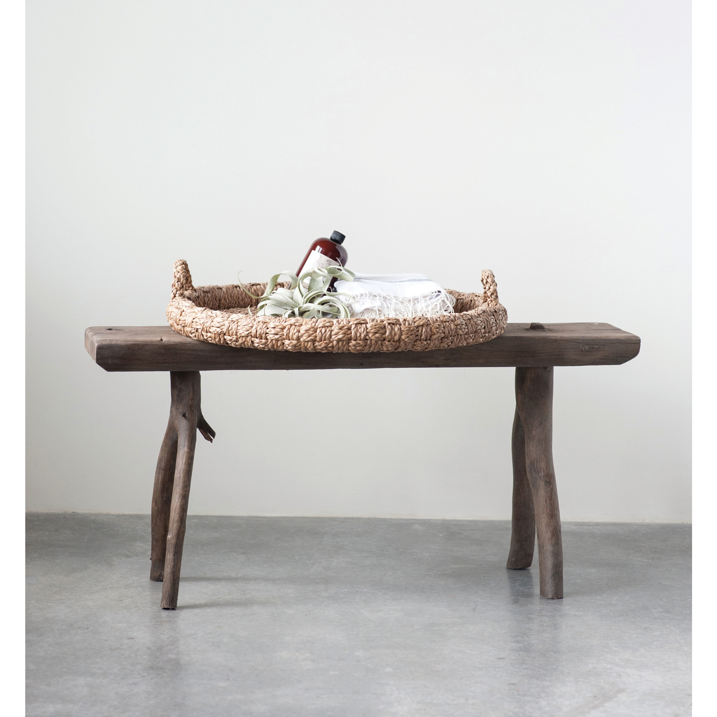 Catalog Name: 29" Round x 2-1/2"H Decorative Braided Bankuan Tray w/ Handles, Natural