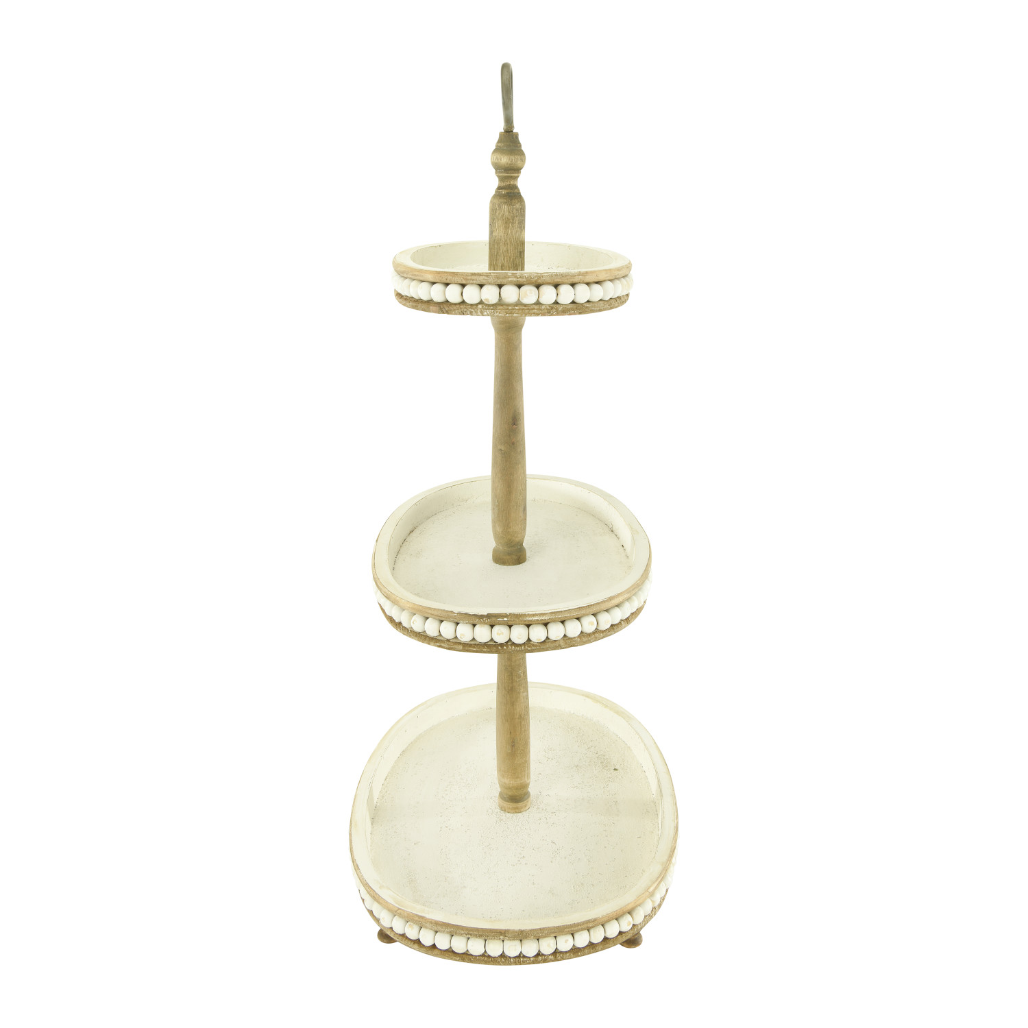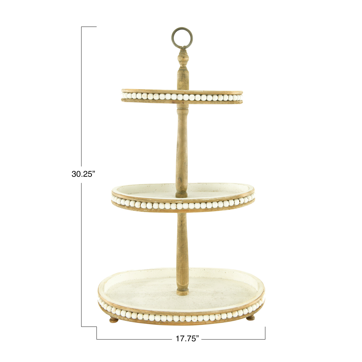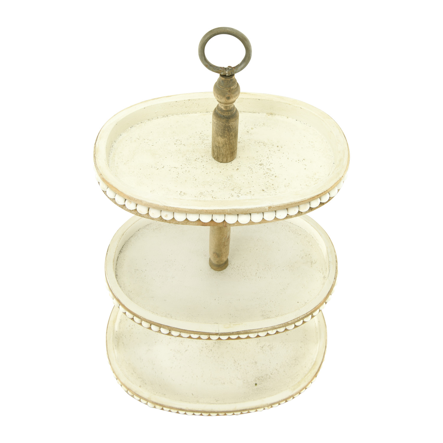 Catalog Name: 17-3/4"L x 12-1/2"W x 30-1/2"H Oval Decorative Wood 3-Tier Tray, Natural & Cream Color