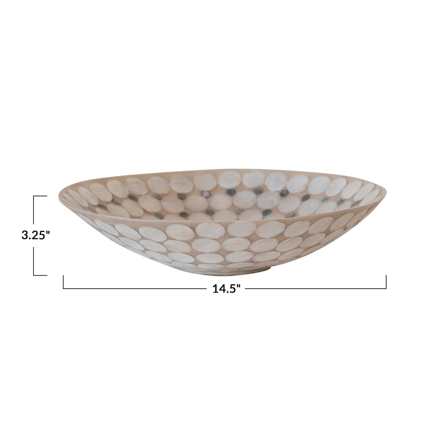 Catalog Name: 14-1/2" Round x 3-1/4"H Decorative Resin & Capiz Bowl, White & Natural