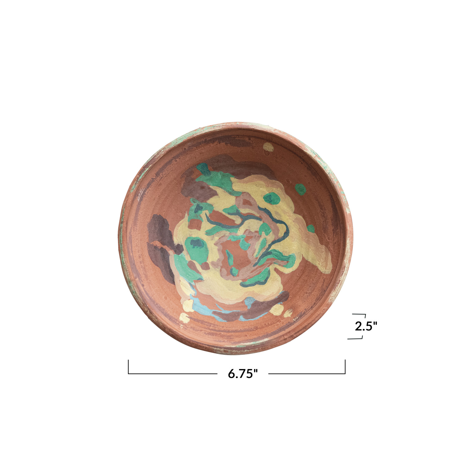 Catalog Name: 6-3/4" Round x 2-1/2"H Decorative Hand-Painted Terra-cotta Bowl, Multi Color (Each One Will Vary)
