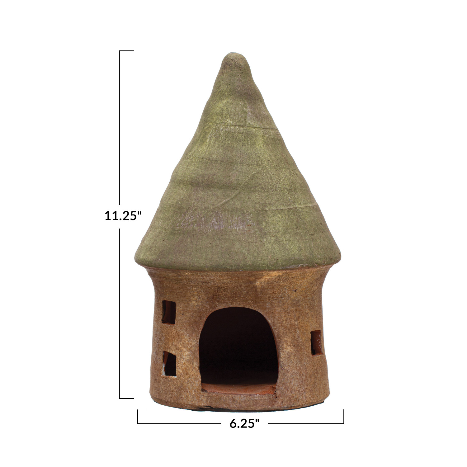 Catalog Name: 6-1/4" Round x 11-1/4"H Terra-cotta Toad House, Green & Natural, Truck Ship