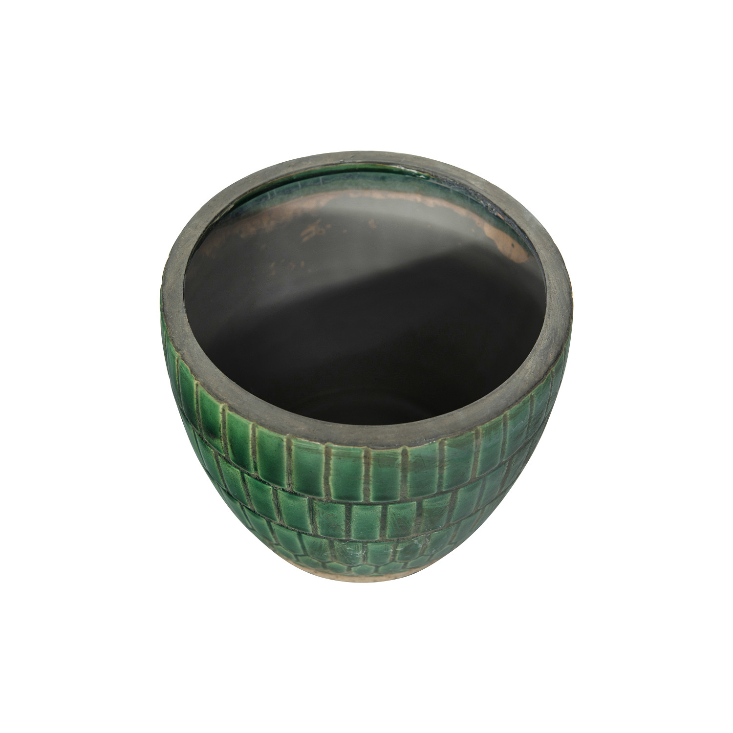 Catalog Name: 6-1/2" Round x 5-1/2"H Terra-cotta Tiled Planter, Green (Holds 5" Pot)