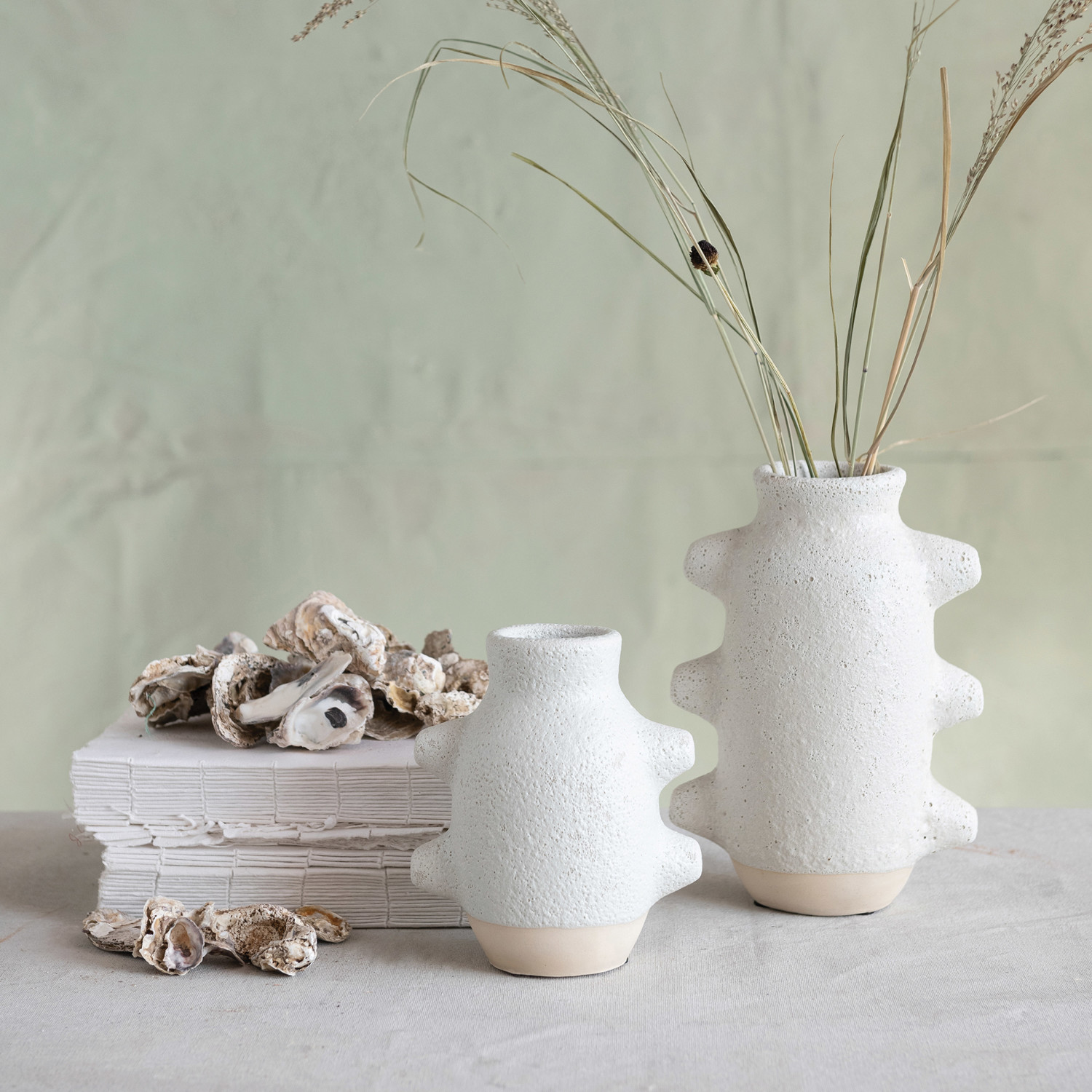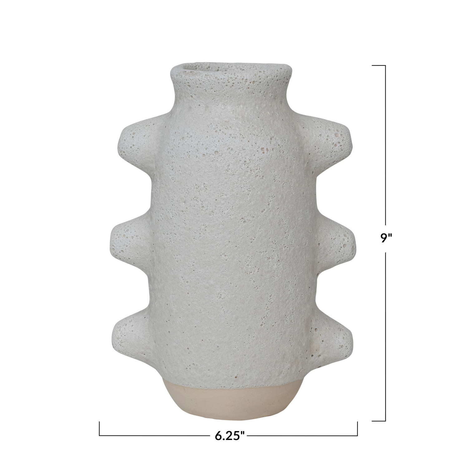 Catalog Name: 6-1/4"L x 4-1/4"W x 9"H Coarse Stoneware Vase, Volcano Finish, White