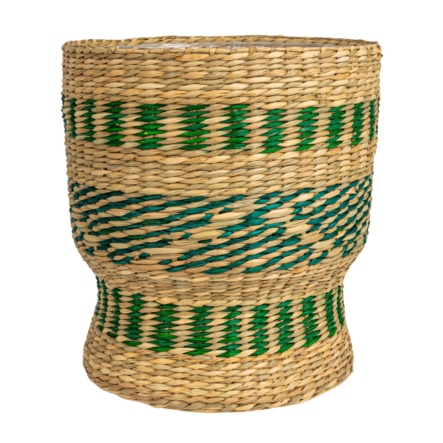 Catalog Name: 11" Round x 9-3/4"H & 9-3/4" Round x 9"H Seagrass Baskets w/ Pattern & Plastic Liners, Green & Natural, Set of 2