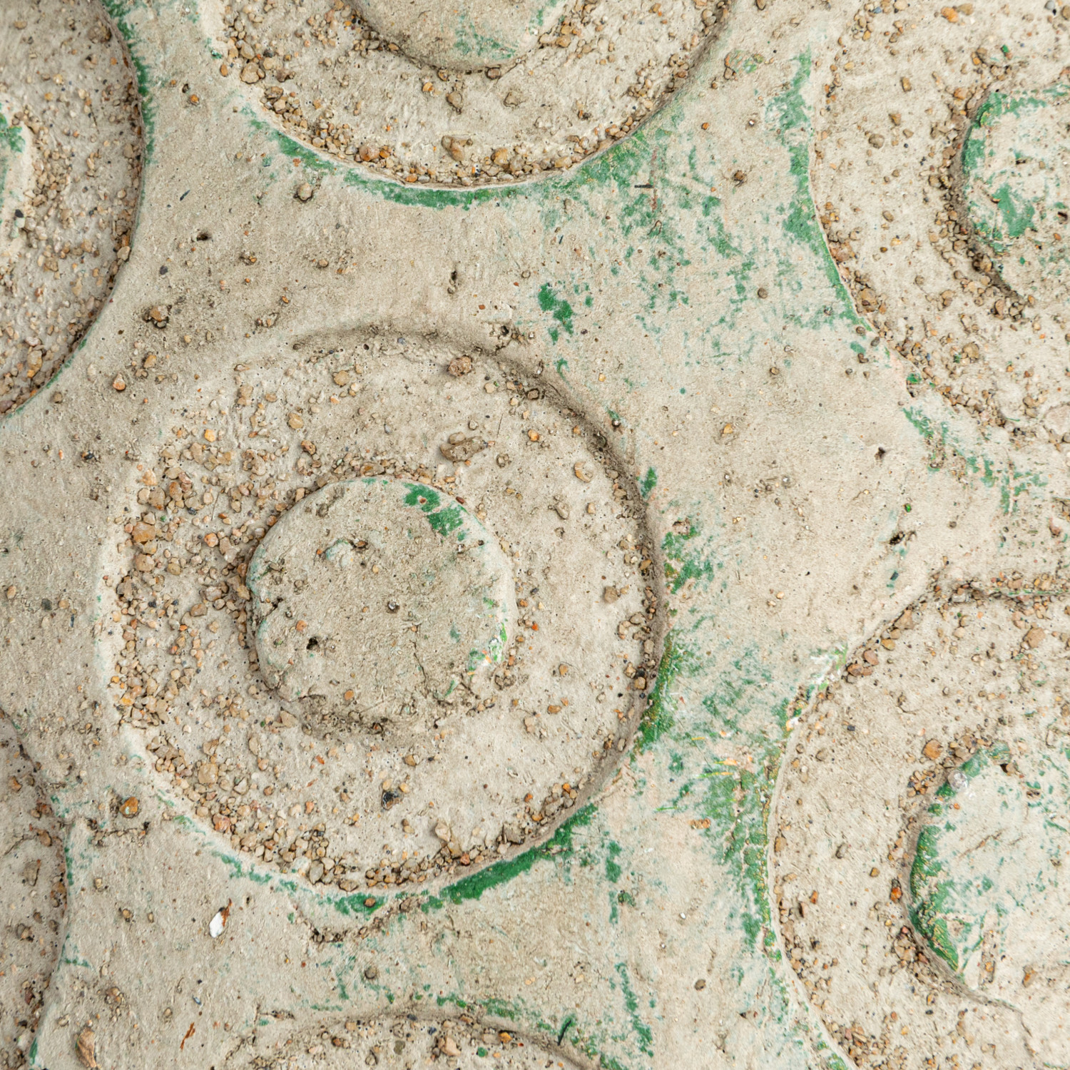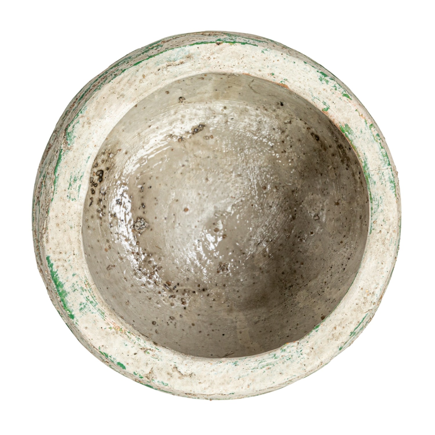 Catalog Name: 6-1/2" Round x 5-3/4"H Terra-cotta Planter w/ Debossed Circles, Distressed Green (Holds 4" Pot)