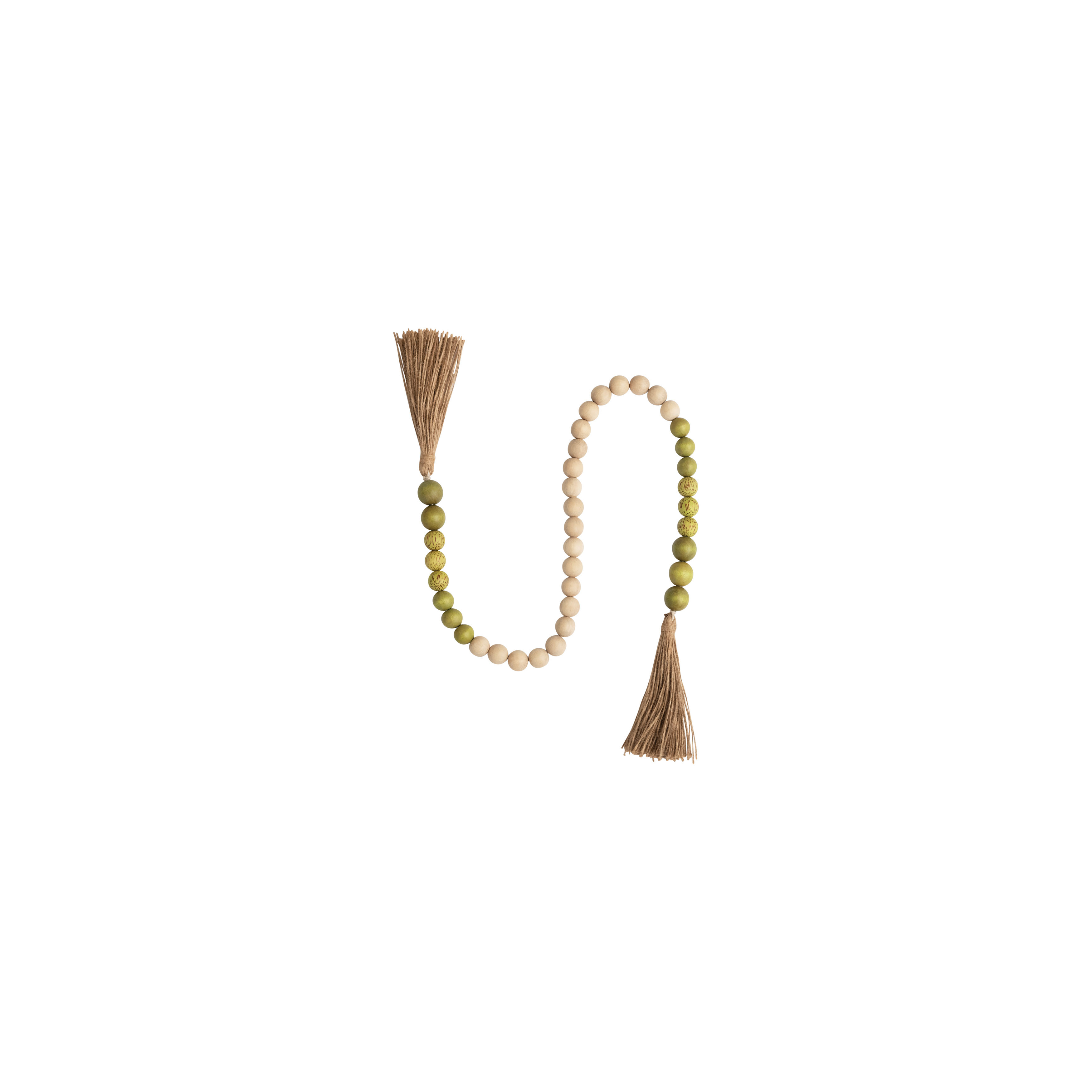 Catalog Name: 41-1/2"L Wood & Coco Shell Bead Garland w/ Jute Tassels, Natural & Green