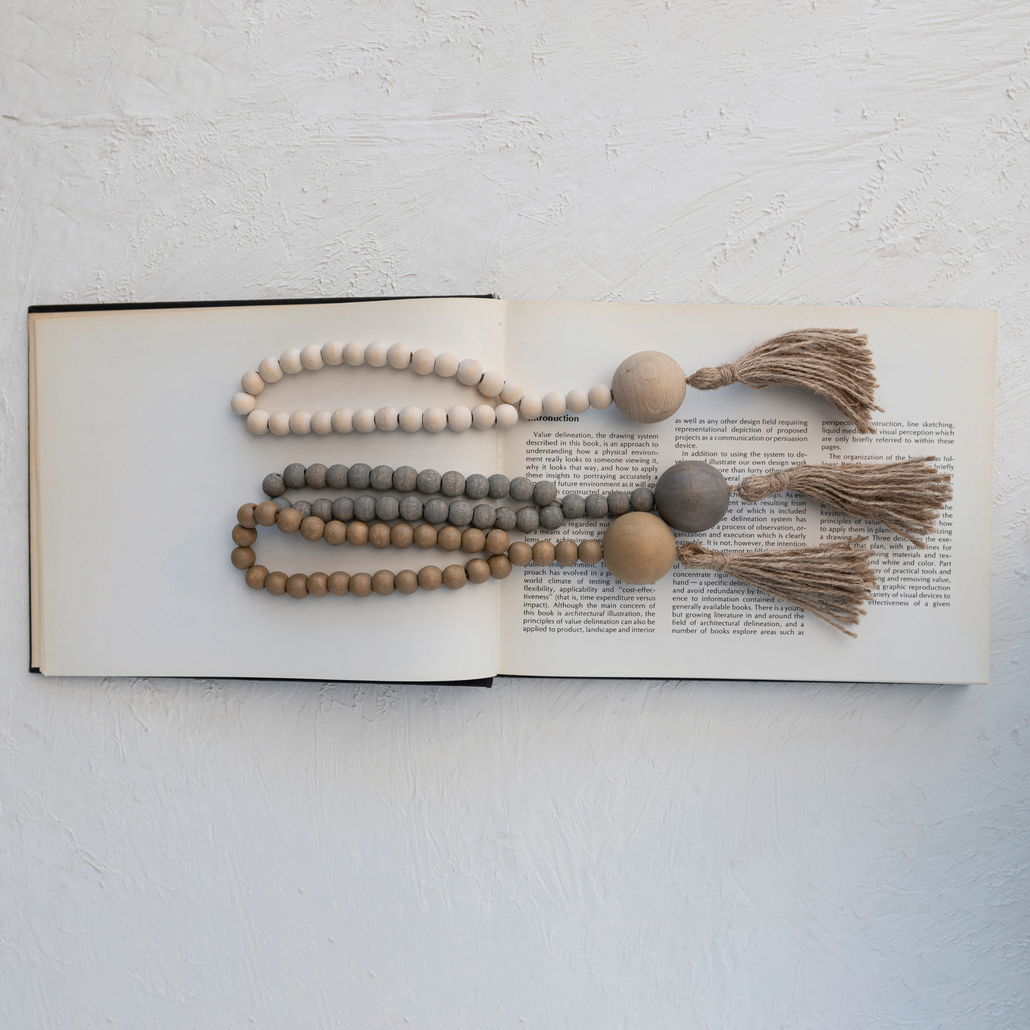 Wood Beads w/ Jute Rope Tassel, 3 Colors