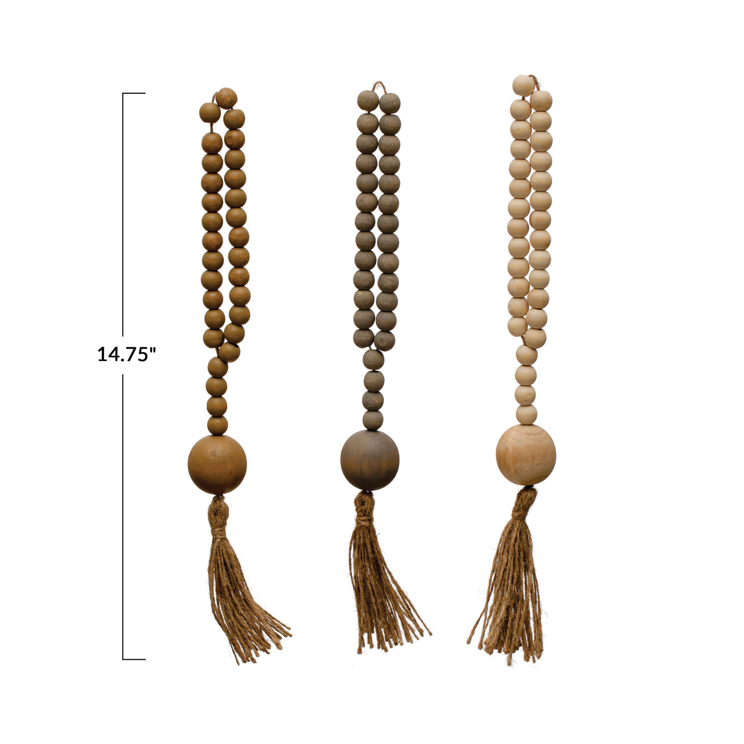 Catalog Name: 14-1/4"L Wood Beads w/ Jute Rope Tassel, 3 Colors