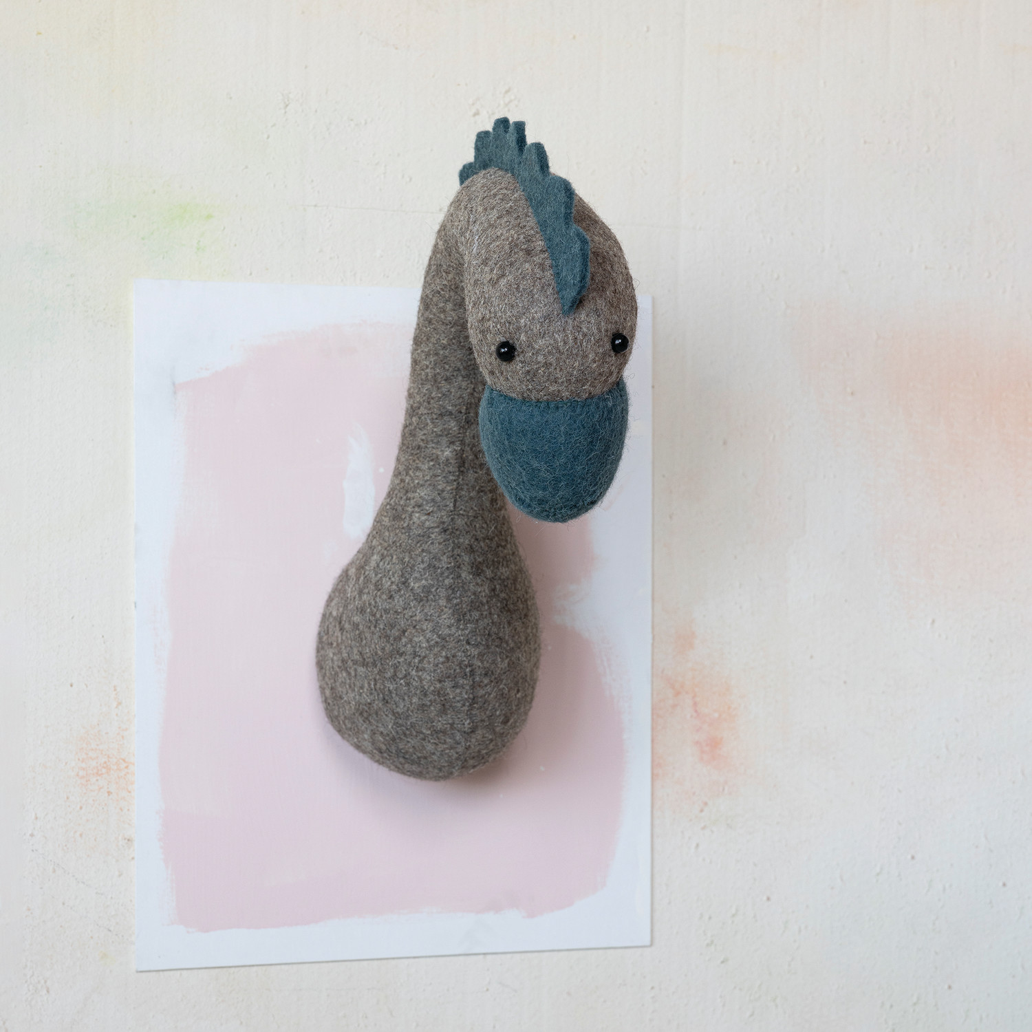 Catalog Name: 9-1/2"W x 6"D x 23"H Handmade Wool Felt Dinosaur Head Wall Décor, Grey & Slate Blue
