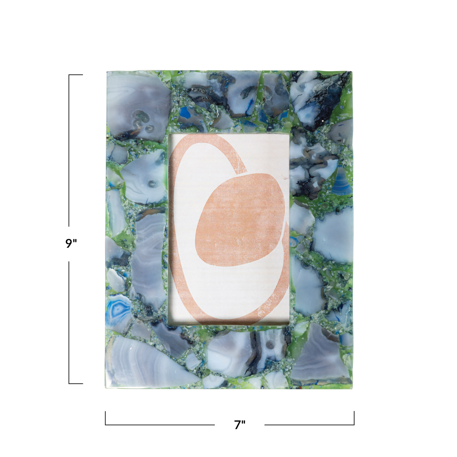 Catalog Name: 7"L x 9"H Agate Photo Frame, Green & Blue (Holds 4" x 6" Photo) (Each One Will Vary)