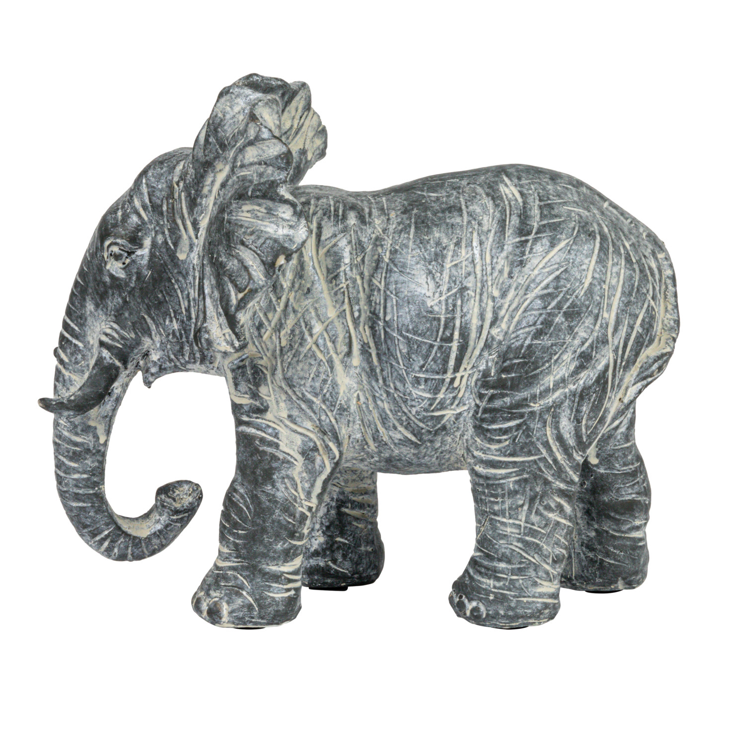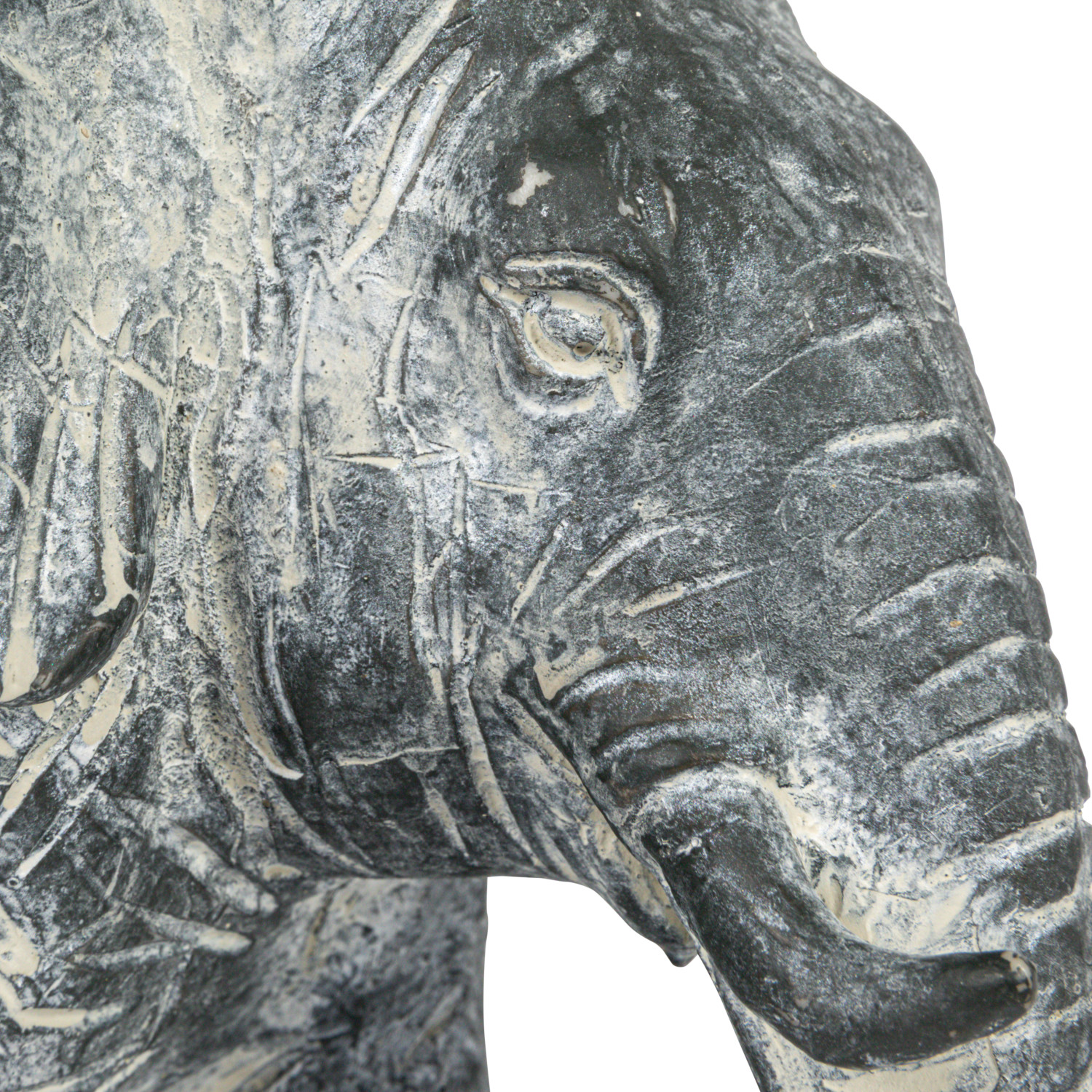 Add some personality and flair to any home or office space with these figures and figurines’ home and office design collections. These collections offer a variety of figures and figurines that can suit any taste and style, from cute and whimsical to elegant and sophisticated. Different materials, such as resin, ceramic, glass, metal, wood, and more, are used to create these figures and figurines. Different shapes and sizes, such as animals, characters, abstract forms, geometric patterns, and more, are also available to choose from. Display them on a desk, shelf, table, or wall and make any space livelier and more attractive. This beautifully crafted resin elephant figurine has a distressed grey finish that gives it a rustic and vintage appeal, while the intricate details capture the essence of this majestic creature. The elephant figurine showcases a distressed grey color, highlighting the intricate details of its design, including textured skin, expressive eyes, and graceful tusks. Perfect for adding a touch of exotic allure to any design style, including bohemian, eclectic, or even farmhouse, display on a shelf, mantel, or side table to create a captivating focal point in any living room, bedroom, or office. Made of pure polyresin plastic.