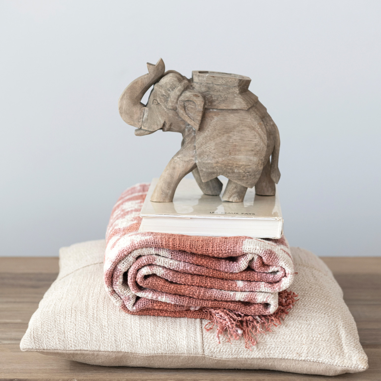 Add some personality and flair to any home or office space with these figures and figurines’ home and office design collections. These collections offer a variety of figures and figurines that can suit any taste and style, from cute and whimsical to elegant and sophisticated. Different materials, such as resin, ceramic, glass, metal, wood, and more, are used to create these figures and figurines. Different shapes and sizes, such as animals, characters, abstract forms, geometric patterns, and more, are also available to choose from. Display them on a desk, shelf, table, or wall and make any space livelier and more attractive. This hand-carved mango wood elephant figurine is made of mango wood and has a sandwashed finish that gives it a rustic and antique look. It has a smooth and solid texture that is easy to clean with a damp cloth, with a hand-carved design that makes each figurine unique and one-of-a-kind; its sandwashed finish that creates a distressed and aged effect. Ideal for any style of interior design and décor, from boho and eclectic to farmhouse and coastal, can be used as a decorative accent for any room of any home or office. Made of pure mango wood.