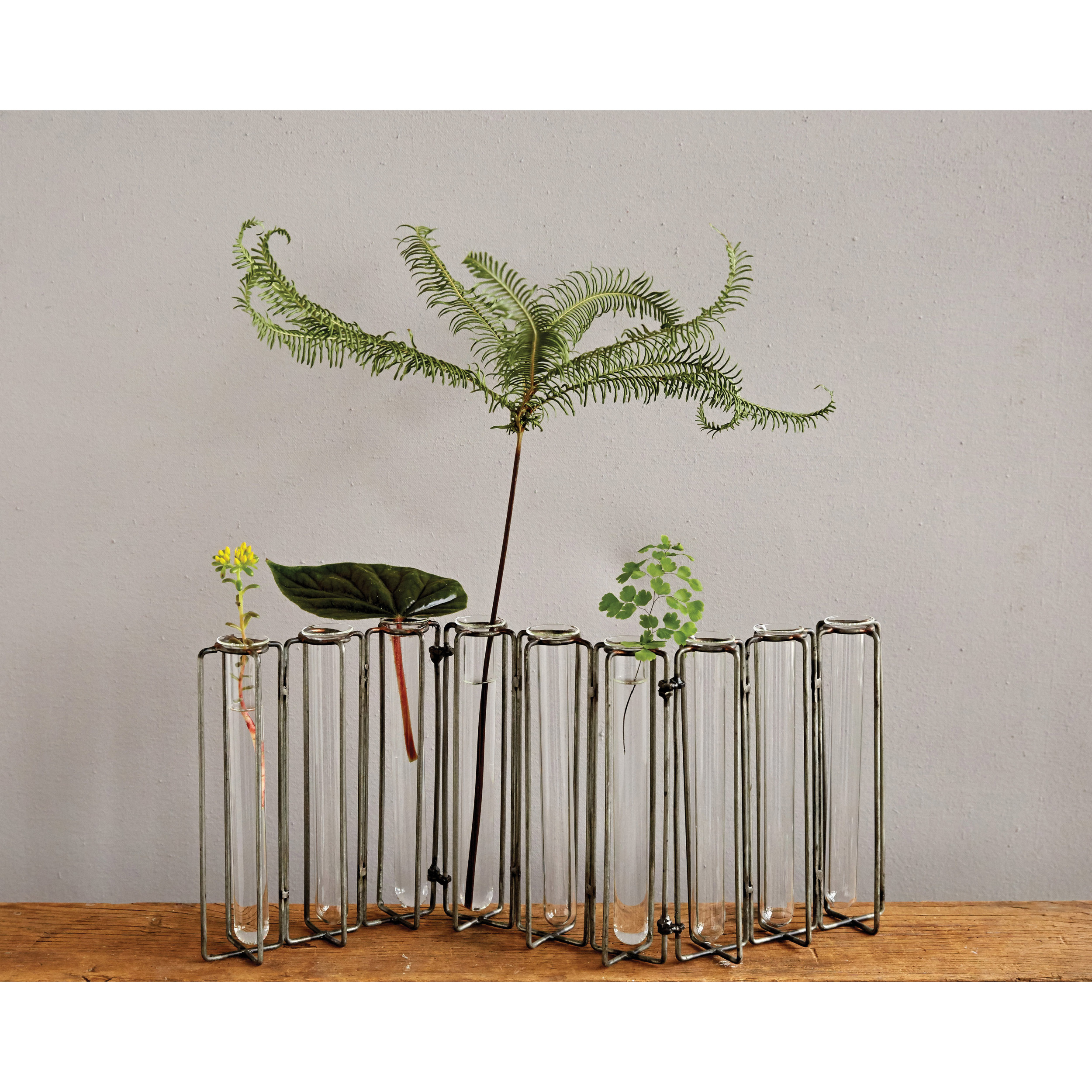 Catalog Name: 18-1/2"L x 2"W x 7-1/2"H Metal & Glass Jointed Vase w/ 9 Test Tubes, Iron Finish