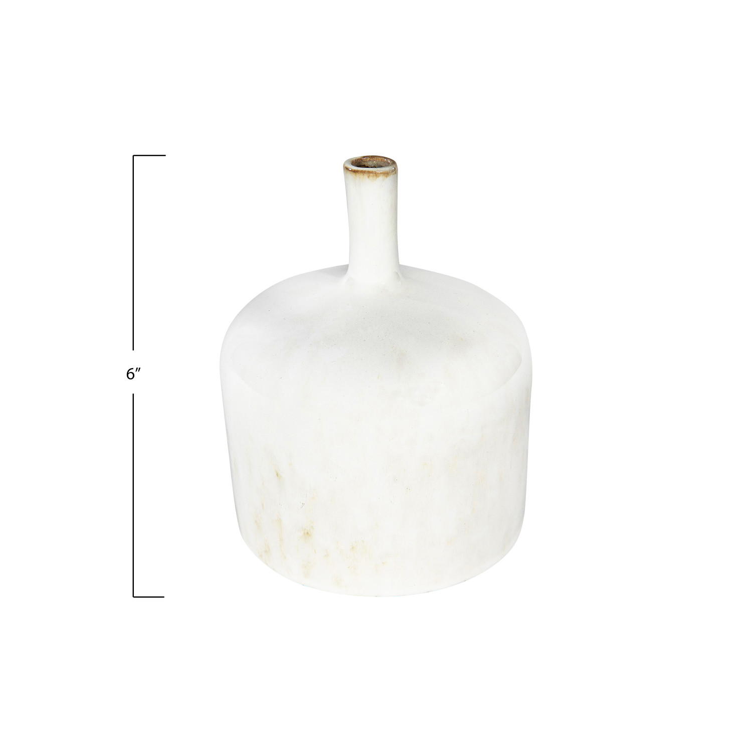 Catalog Name: 5" Round x 6"H Decorative Stoneware Vase, Reactive Glaze, White (Each One Will Vary)
