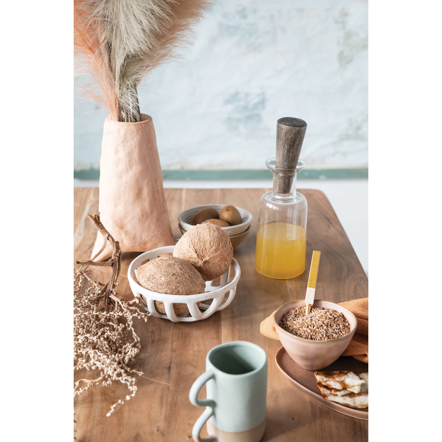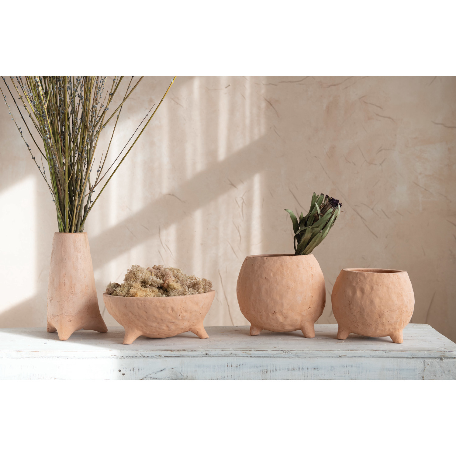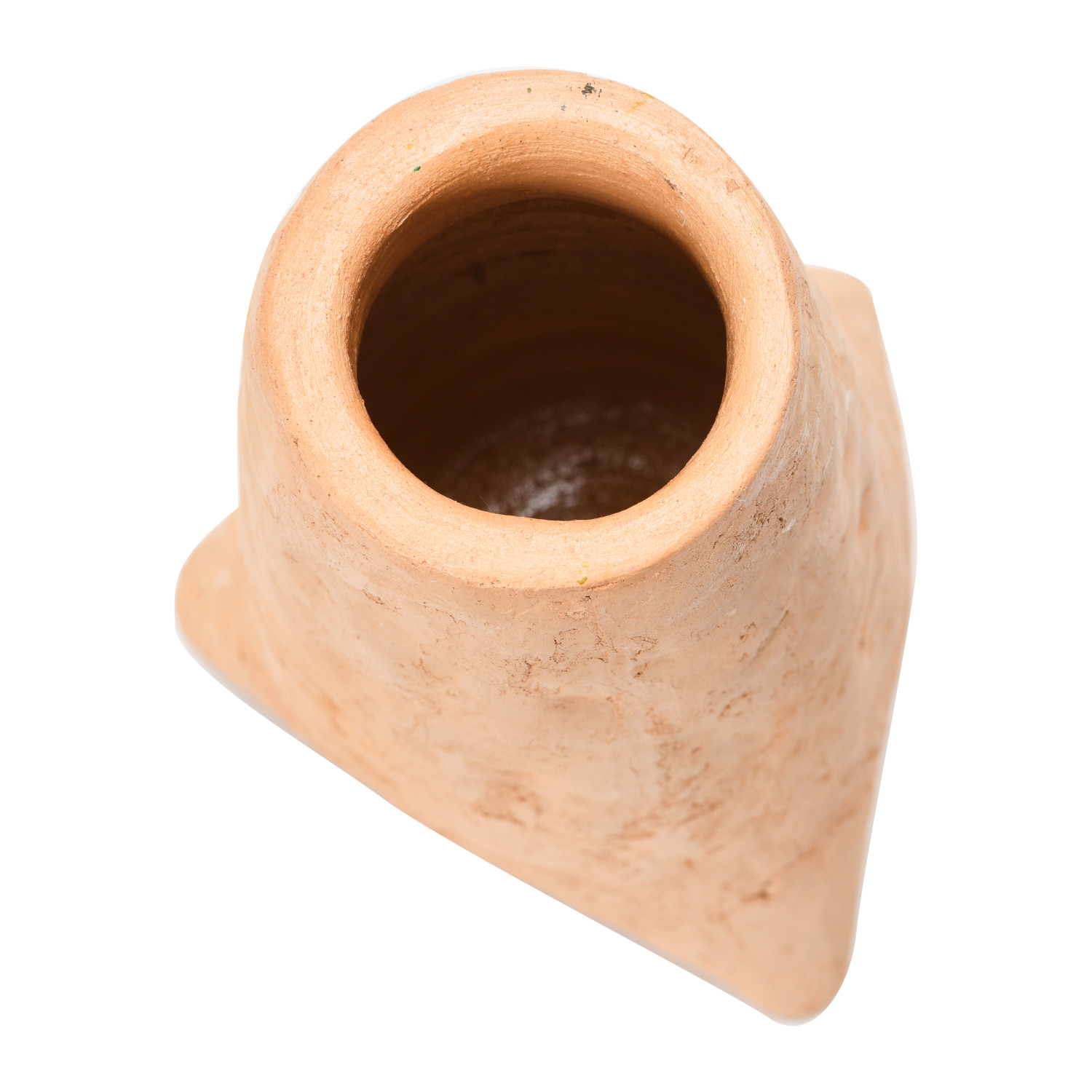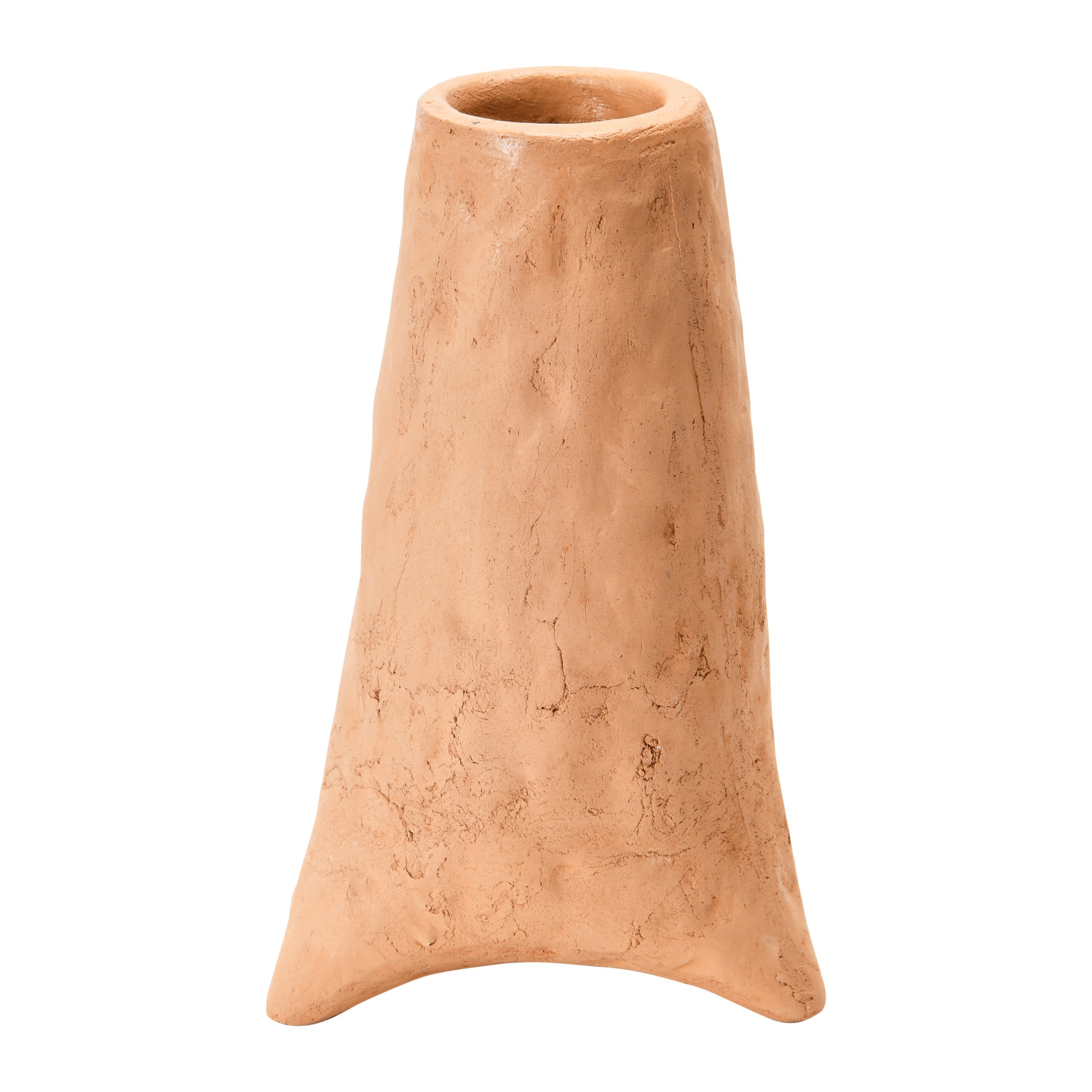 This vase is a beautiful way to display faux or real florals. Made out of terracotta, this vase has a beautiful terracotta color and organic shape. This vase looks great on table tops and shelves, and displays any real or faux florals or stems in a beautiful way.