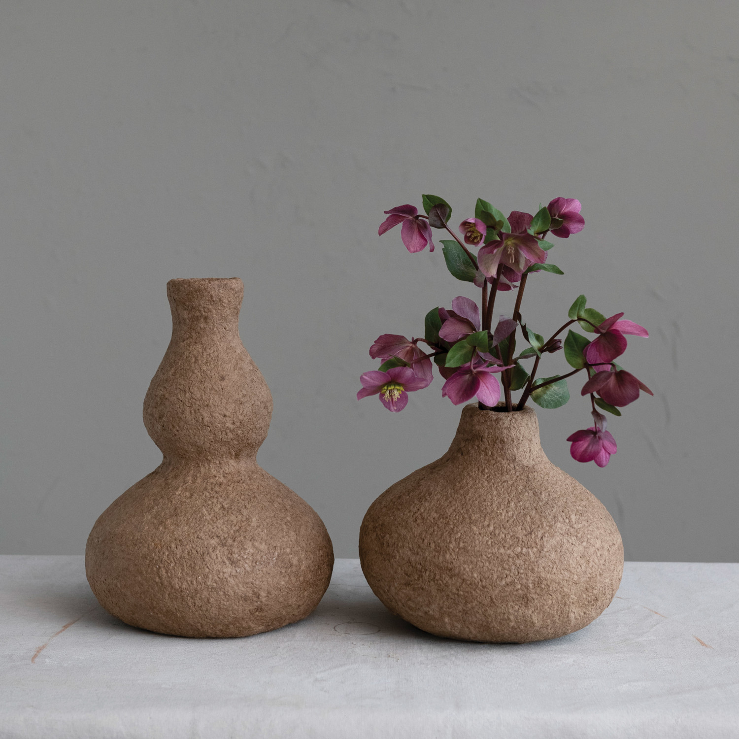 Catalog Name: 9-3/4" Round x 9-1/2"H Decorative Handmade Paper Mache Vase, Brown (Each One Will Vary)