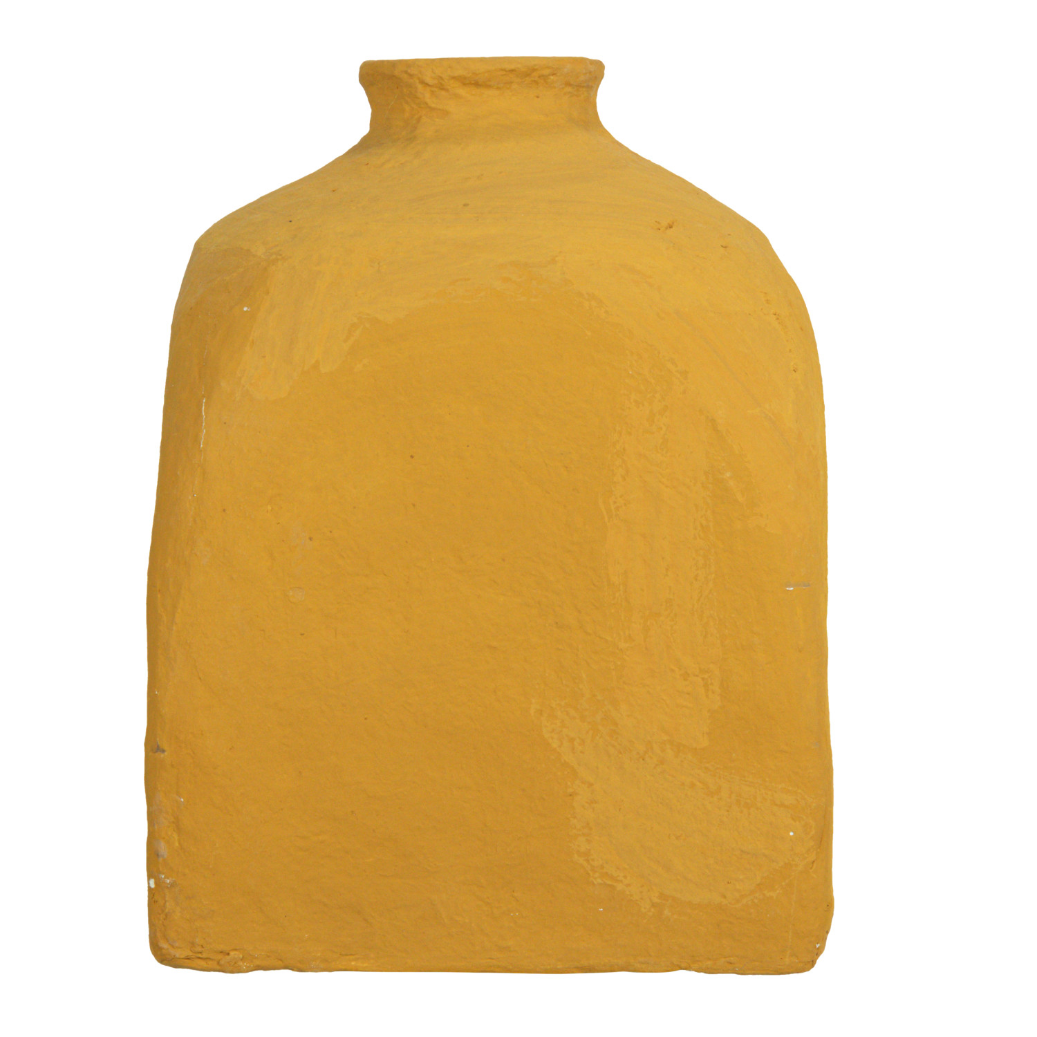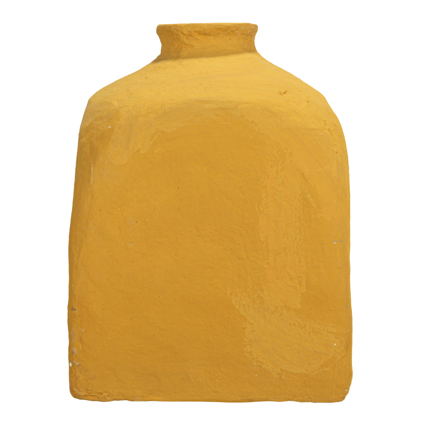 Add some style and personality to any home or office with these stunning vases. These vases come in various shapes, sizes, materials, and designs, offering a wide range of options to suit any preference and decor. Whether looking for a simple and elegant ceramic vase, a colorful and whimsical glass vase, a rustic and natural wood vase, or a modern and sleek metal vase, there is something for everyone in this collection. These vases are perfect for displaying flowers, plants, candles, or other decorative items, or simply as standalone accents that will enhance the beauty and charm of any space. Featuring a square shape and mustard color and texture from paper Mache, this floor vase stands tall at 21 inches and adds elegance and artistic flair to any room with its individual variations. Its bold and vibrant mustard color adds a pop of personality and warmth to any space making it the perfect complement to homes with eclectic, modern, or bohemian decor styles. The wide 7-inch round opening provides ample space to create stunning floral arrangements or showcase tall decorative branches, while its lightweight design allows for easy repositioning, giving anyone the flexibility to create different focal points in any home. Made of paper Mache.
