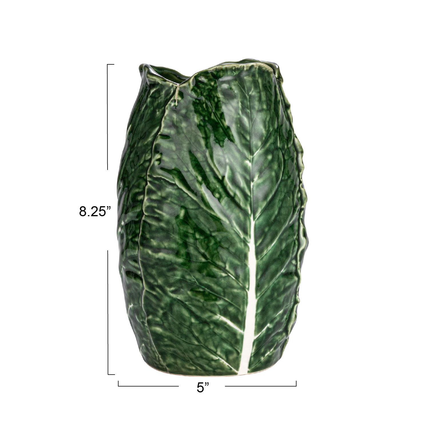 Catalog Name: 5" Round x 8-1/4"H Hand-Painted Stoneware Cabbage Shaped Vase, Green