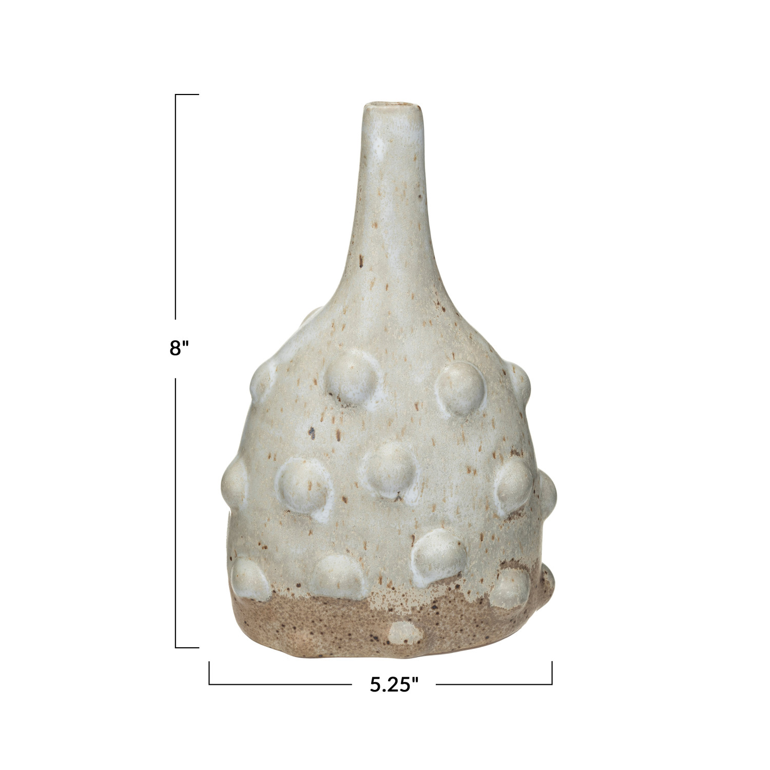 Catalog Name: 5-1/4"L x 3-1/4"W x 8"H Stoneware Vase w/ Raised Dots, Reactive Glaze, White (Each One Will Vary)