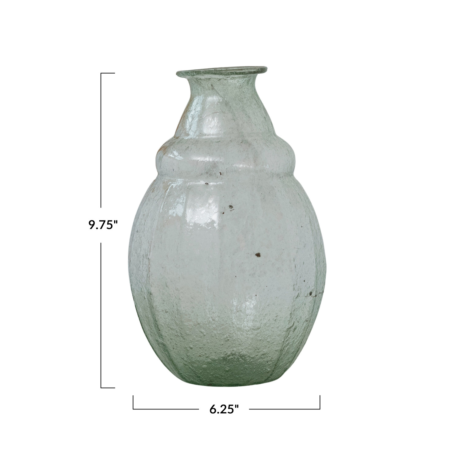 Catalog Name: 6-1/4" Round x 9-3/4"H Hand-Blown Seeded Glass Vase, Green