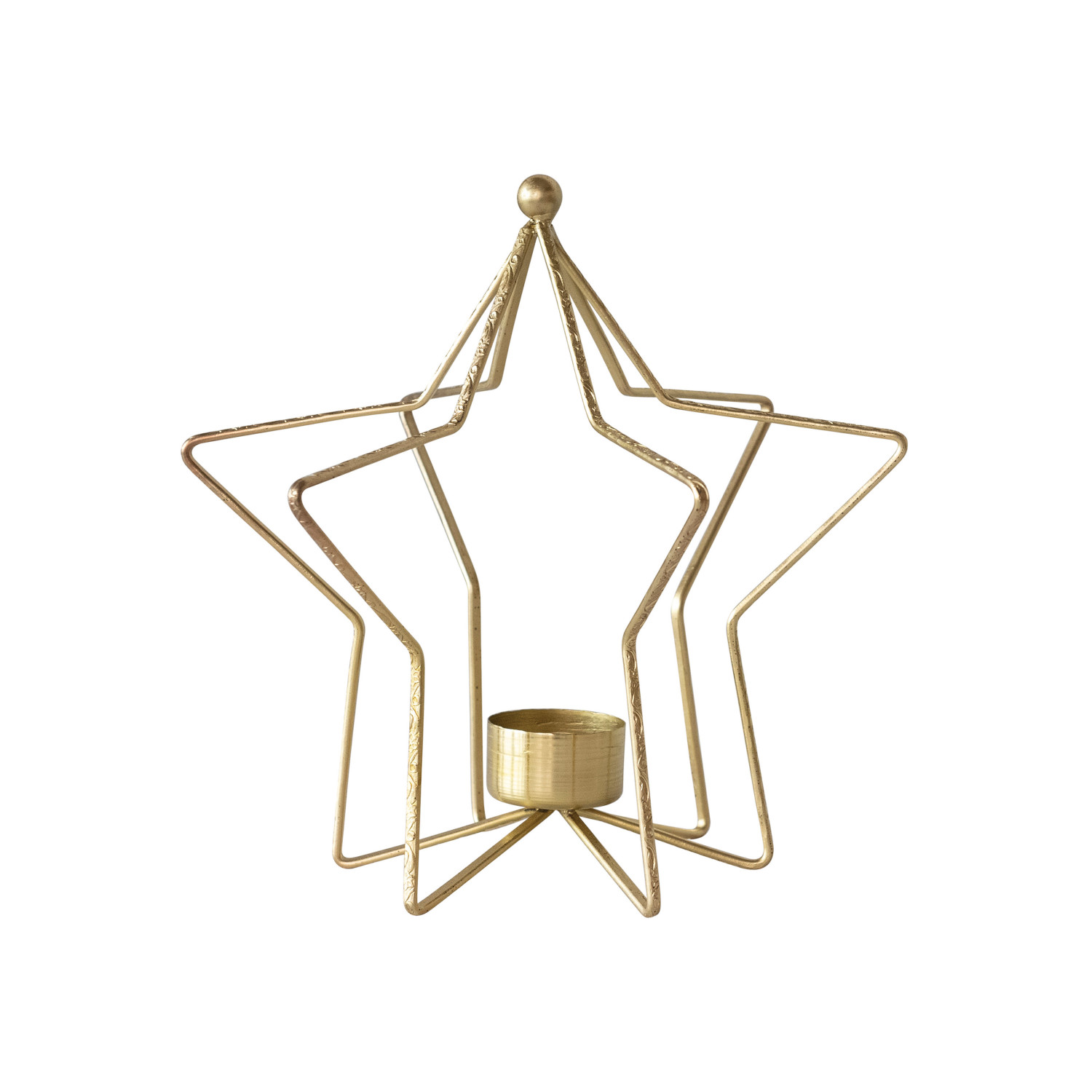 Catalog Name: 9-1/4" Round x 8-3/4"H Metal Star Shaped Tealight Holder, Gold Finish