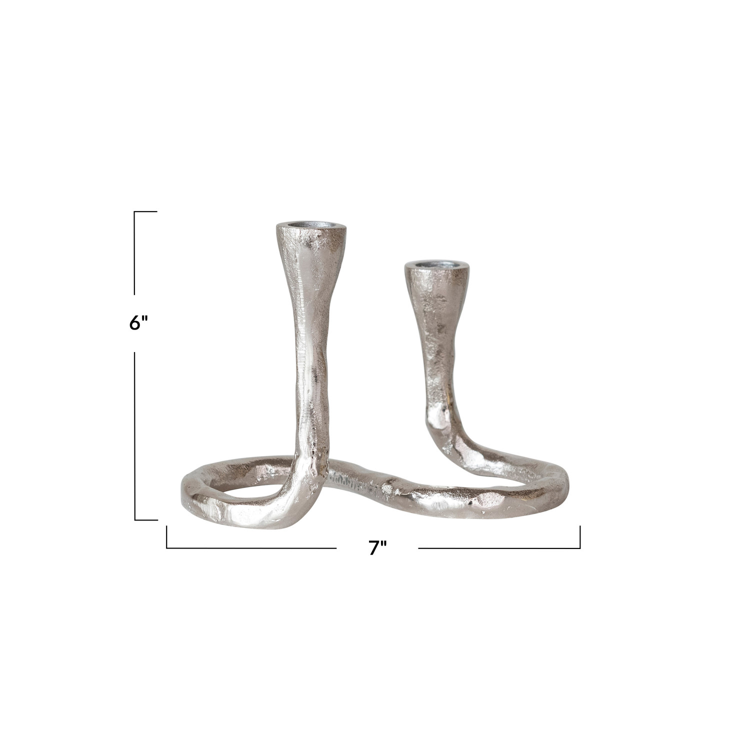 Catalog Name: 7"L x 7"W x 6"H Electroplated Aluminum Wavy Taper Holder, Nickel Finish (Holds 2 Tapers)