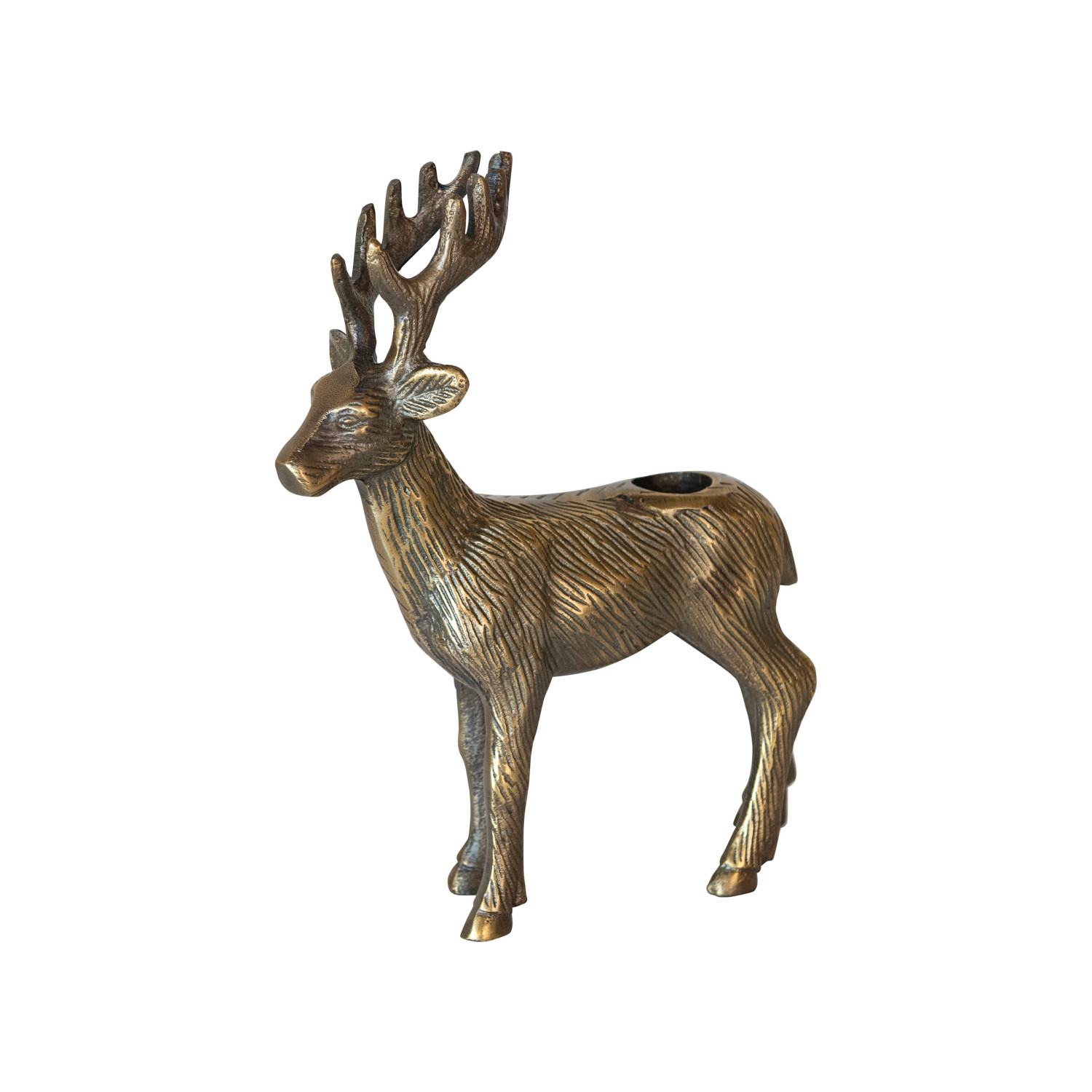Catalog Name: 6-3/4"L x 2"W x 8-1/2"H Cast Aluminum Reindeer Taper Holder, Antique Gold Finish