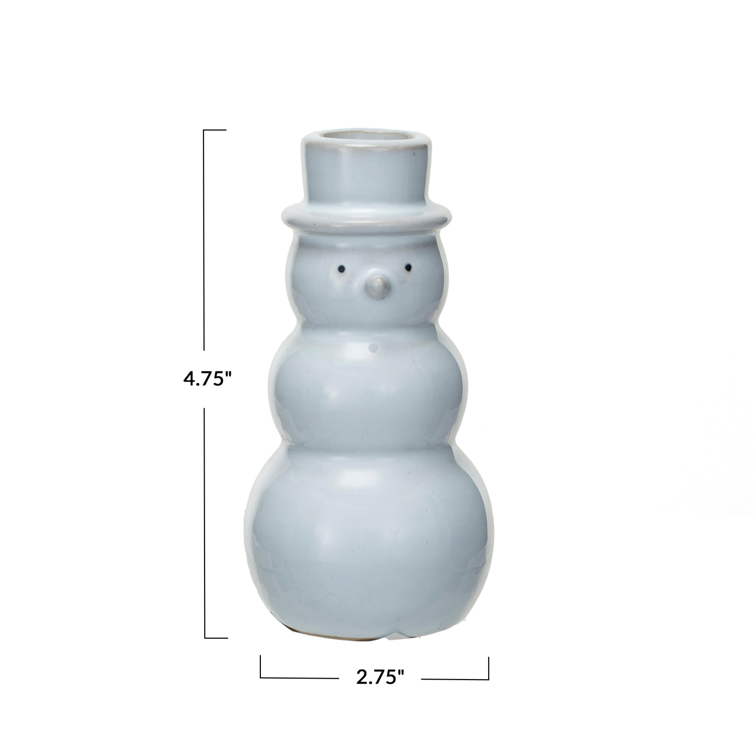 Catalog Name: 2-3/4" Round x 4-3/4"H Stoneware Snowman Shaped Taper Holder, Reactive Glaze, White (Each One Will Vary)