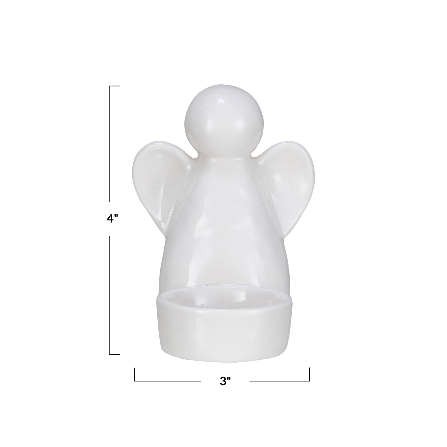 Catalog Name: 4"L x 3"W x 4"H Stoneware Angel Tealight Holder, White