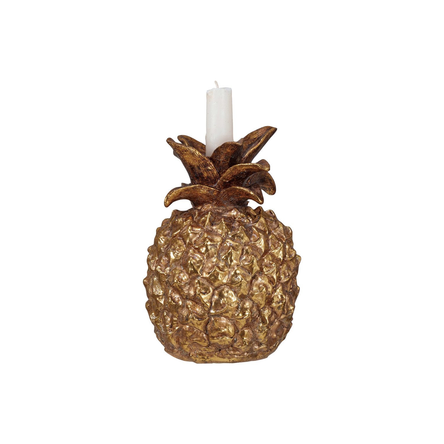 Catalog Name: 4"L x 4"W x 5-3/4"H Resin Pineapple Taper Holder, Antique Gold Finish