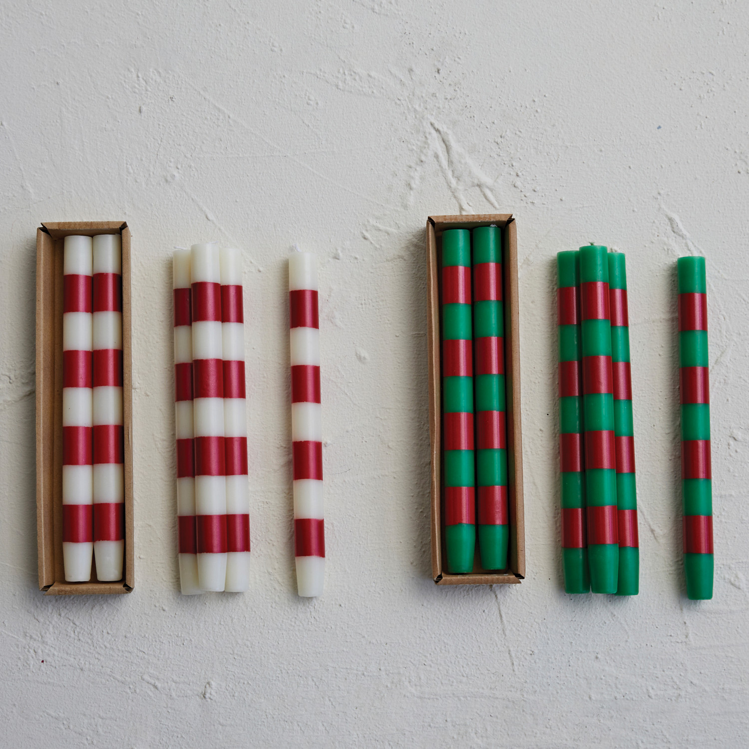10"H Unscented Taper Candles w/ Stripes in Box, Set of 2 (Approximate Burn Time 15 Hours)