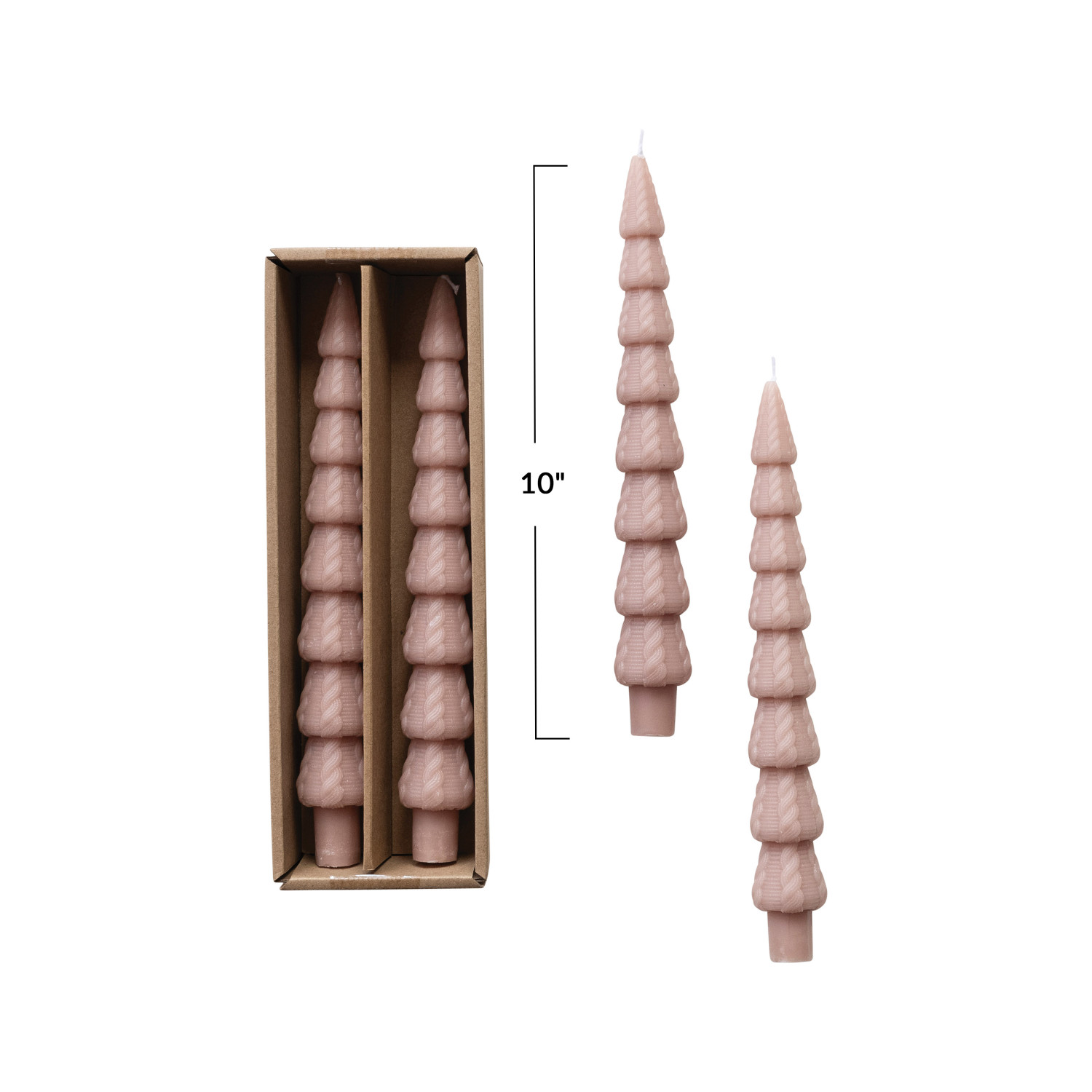 Catalog Name: 10"H Unscented Tree Shaped Taper Candles in Box, Khaki Color, Set of 2 (Approximate Burn Time 8 Hours)