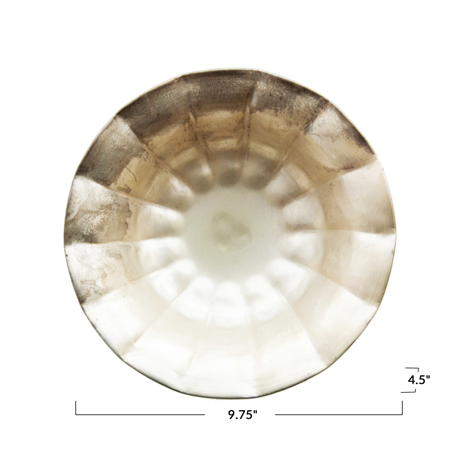 Catalog Name: 9-3/4" Round x 4-1/2"H Decorative Metal Ruffled Footed Bowl, Distressed Gold Finish