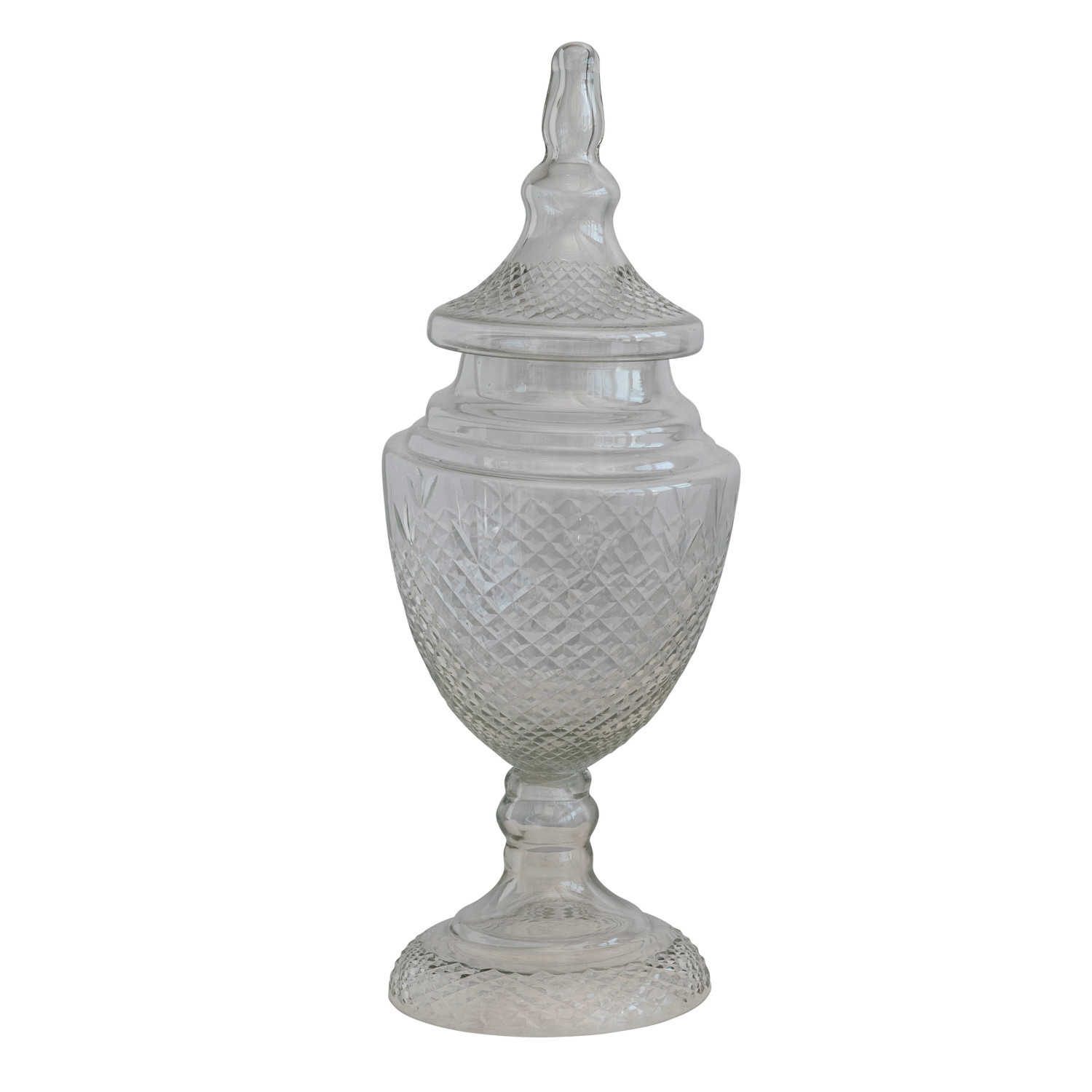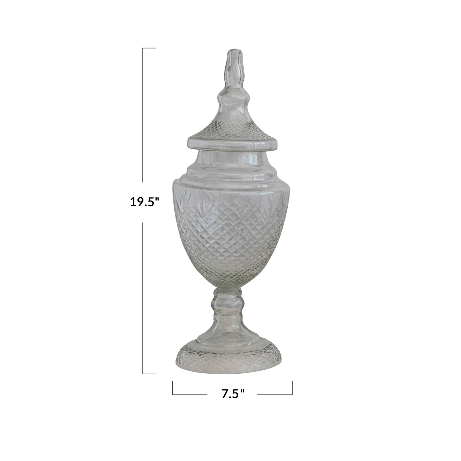 Catalog Name: 7-1/2" Round x 19-1/2"H Cut Glass Apothecary Jar, Truck Ship