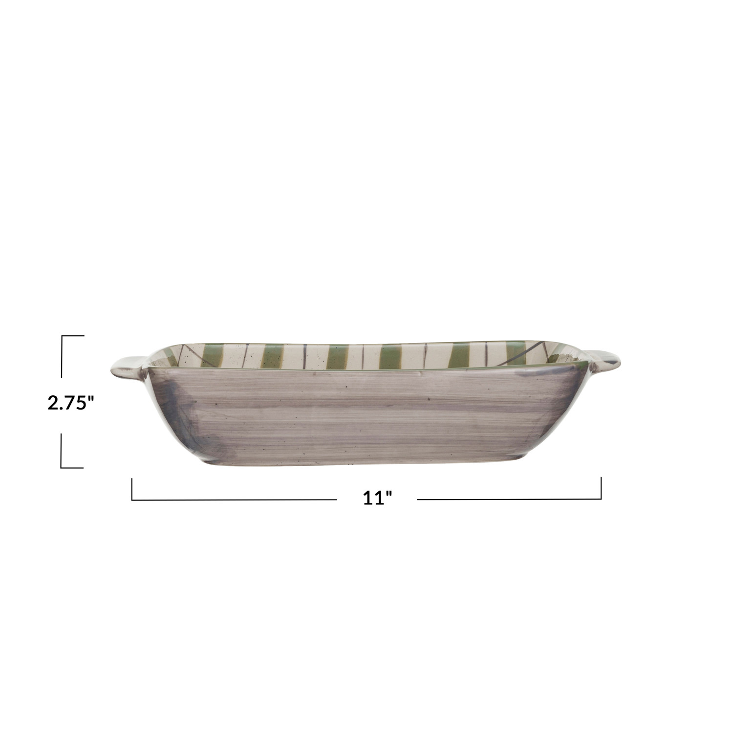 Catalog Name: 11"L x 6"W x 2-3/4"H 1 Quart Hand-Painted Stoneware Baking Dish w/ Plaid Pattern, Cream Color, Green & Grey Speckled