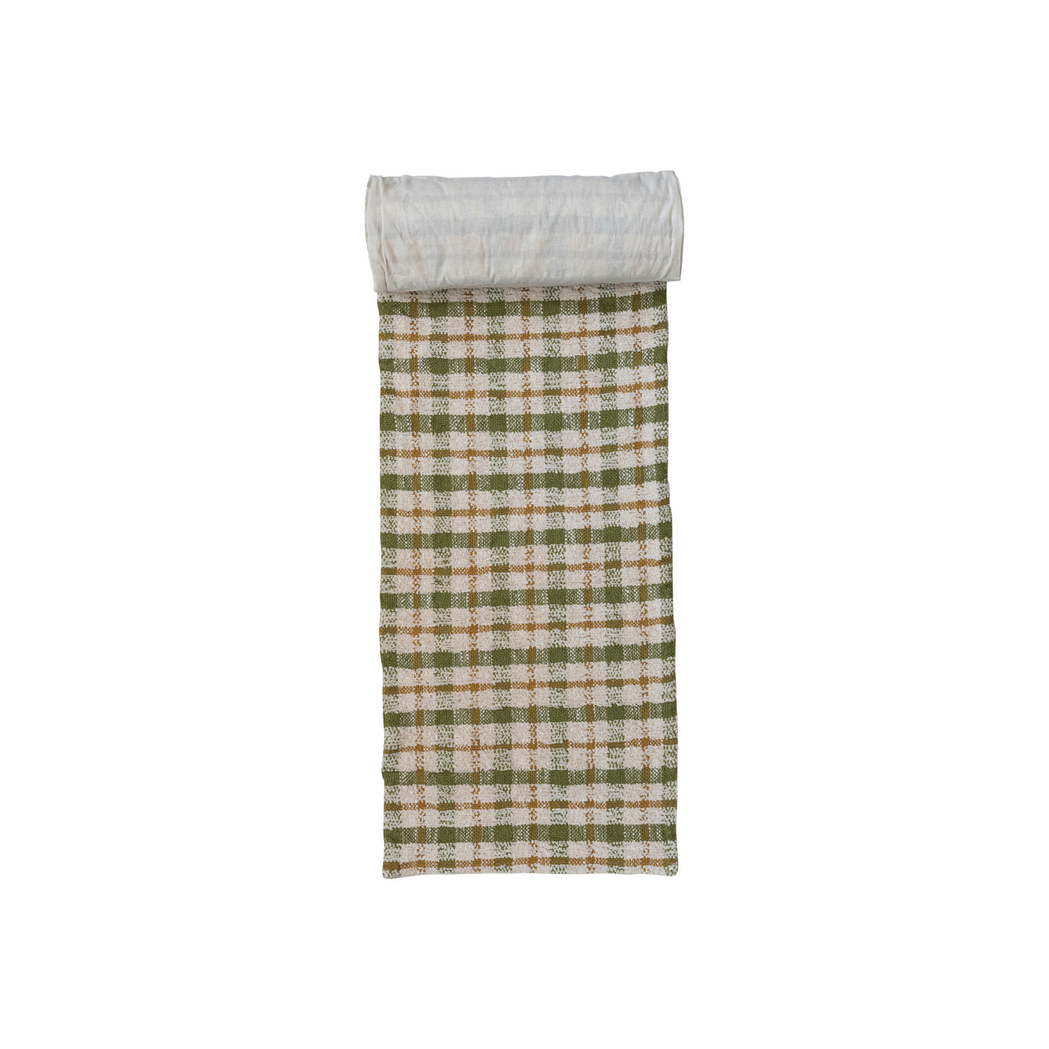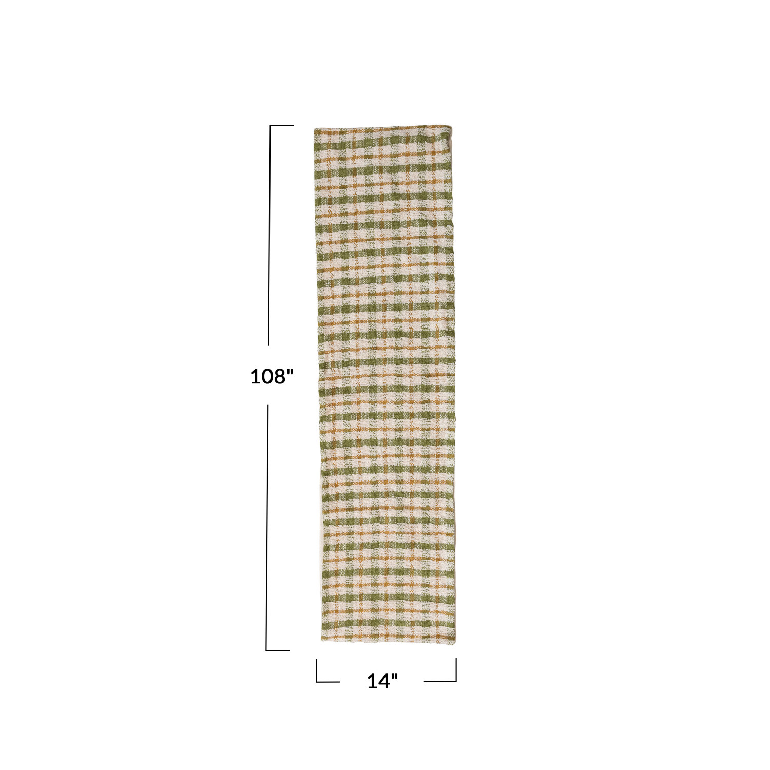Catalog Name: 108"L x 14"W Woven Cotton Table Runner, Cream Color, Green & Yellow Plaid