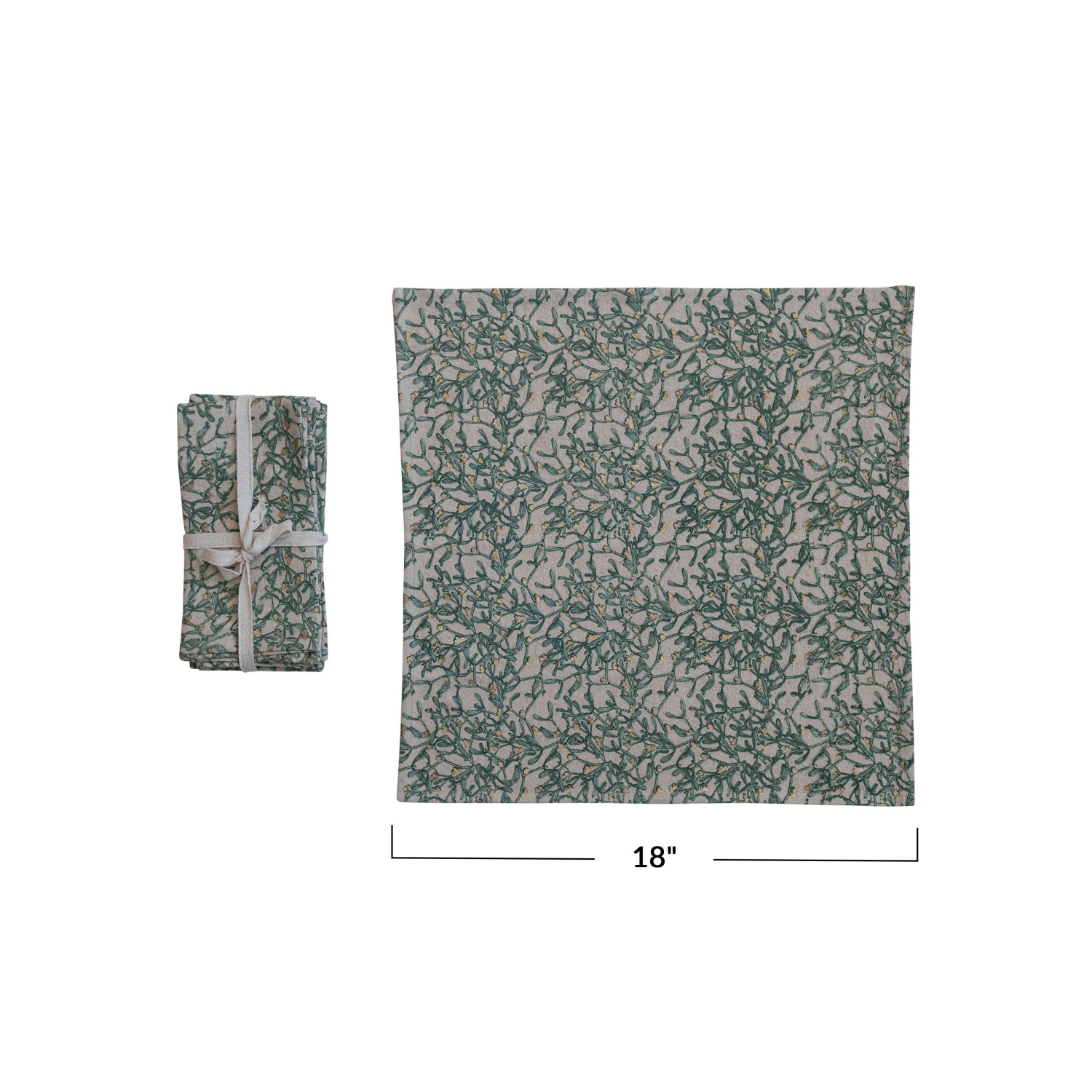 Catalog Name: 18" Square Cotton & Linen Printed Napkins w/ Botanicals Pattern & Gold Foil, Natural & Green, Set of 4 ©