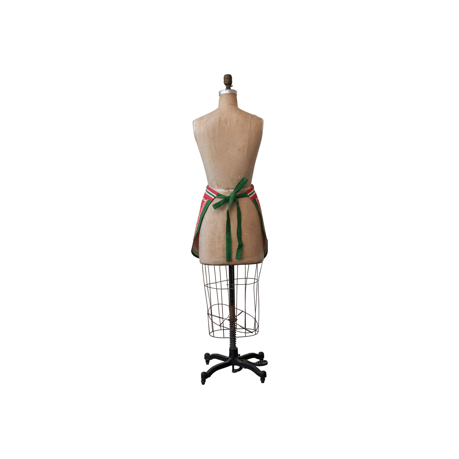 Add some playfulness and festivity to the kitchen with this cotton slub-printed half apron. This half apron is made of natural cotton that is breathable. The apron features a cotton slub-printed fabric in multicolor, an embroidery of holly, pom poms and the words "Kiss the Claus," and a pocket on the front that will add some charm and humor to the decor. The apron is soft, smooth, and easy to wear. It has a waist tie for a comfortable fit and a pocket for holding utensils or other items. The apron measures 22 inches by 17 inches and covers the lower body well. More than just protection, this apron adds a touch of personality and flair to the home. A playful and festive half apron that features a cotton slub printed fabric in multicolor, an embroidery of holly, pom poms and the words "Kiss the CLAUS", and a pocket on the front. A fun way to show holiday spirit, with a humorous and catchy design that will make anyone laugh and enjoy cooking or baking. This apron is soft, smooth, and easy to wear; It has a waist tie for a comfortable fit and a pocket for holding utensils or other items.