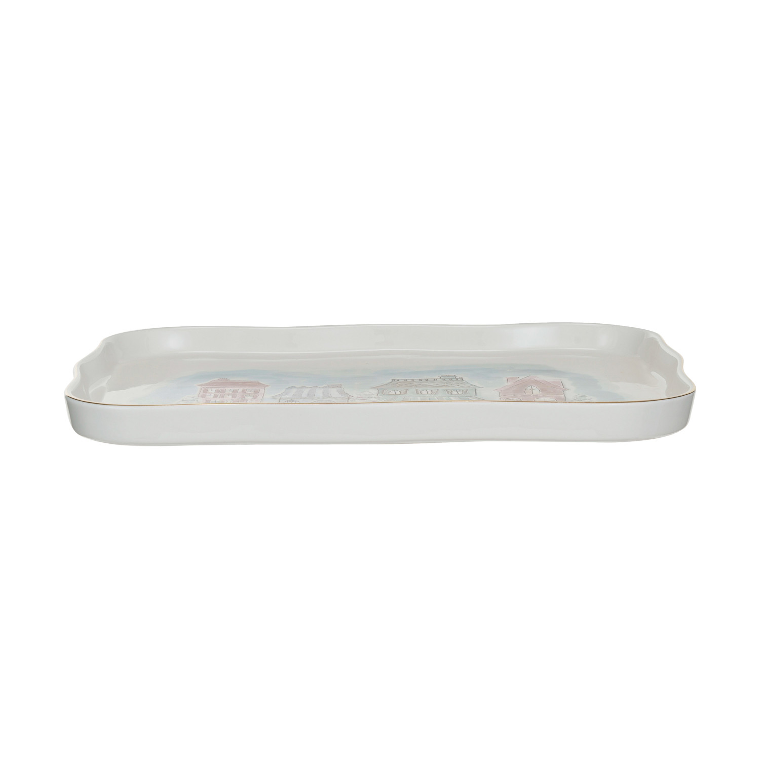 Catalog Name: 13"L x 9"W Stoneware Platter w/ Village Christmas Scene & Gold Electroplating "It's Beginning To Look A Lot Like Christmas", Multi Color ©