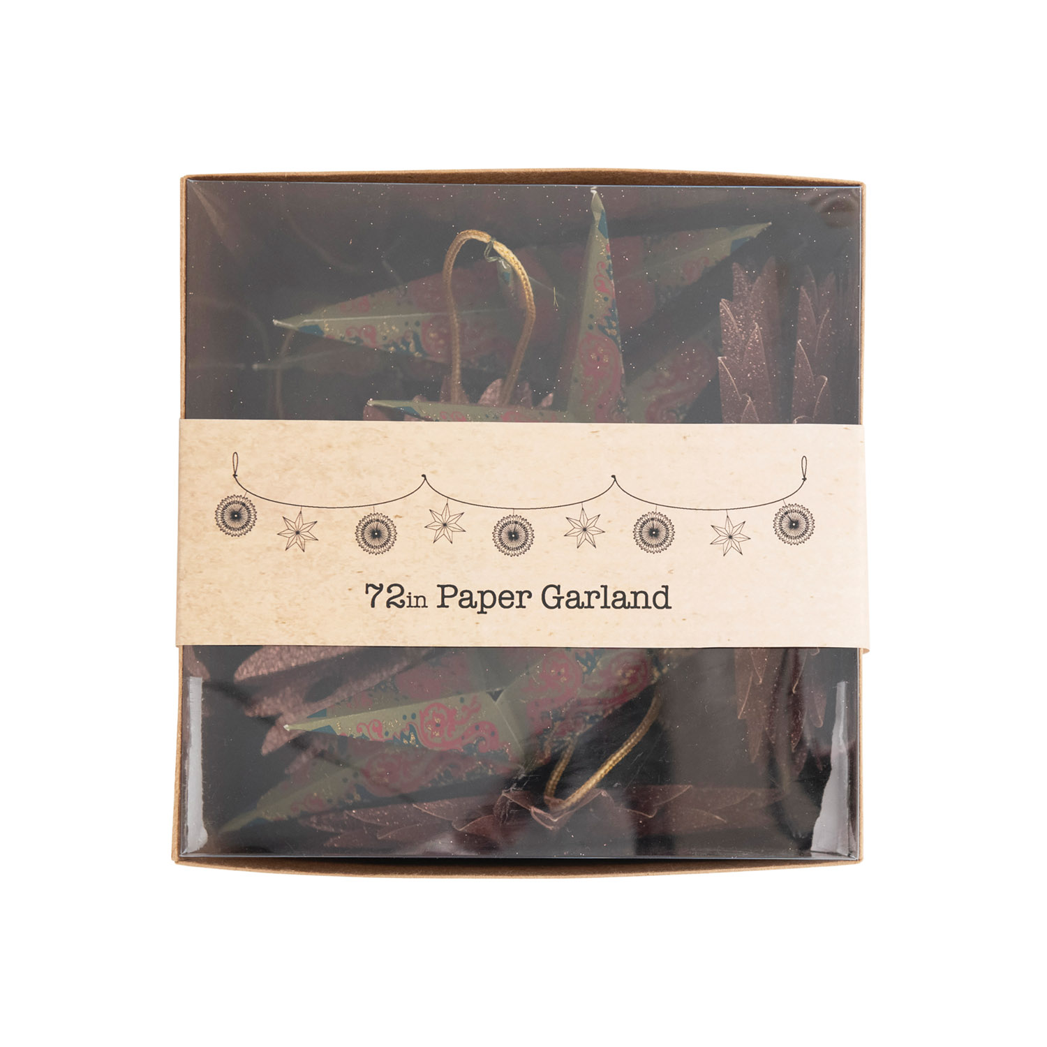 78"L Printed Paper Star and Snowflake Garland in Kraft Box, Multi Color