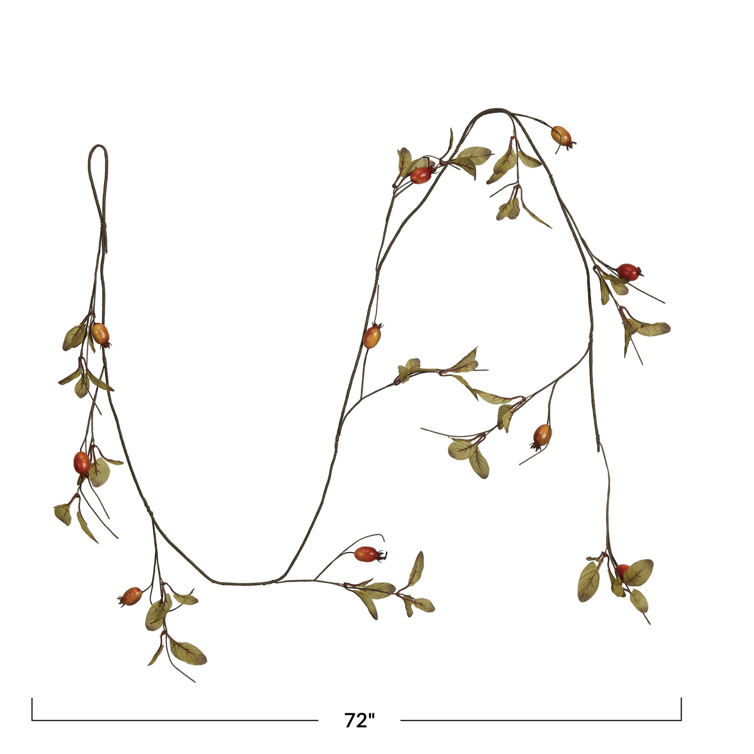 Catalog Name: 72"L x 6-1/4"H Faux Rose Hip Garland, Green & Orange Color