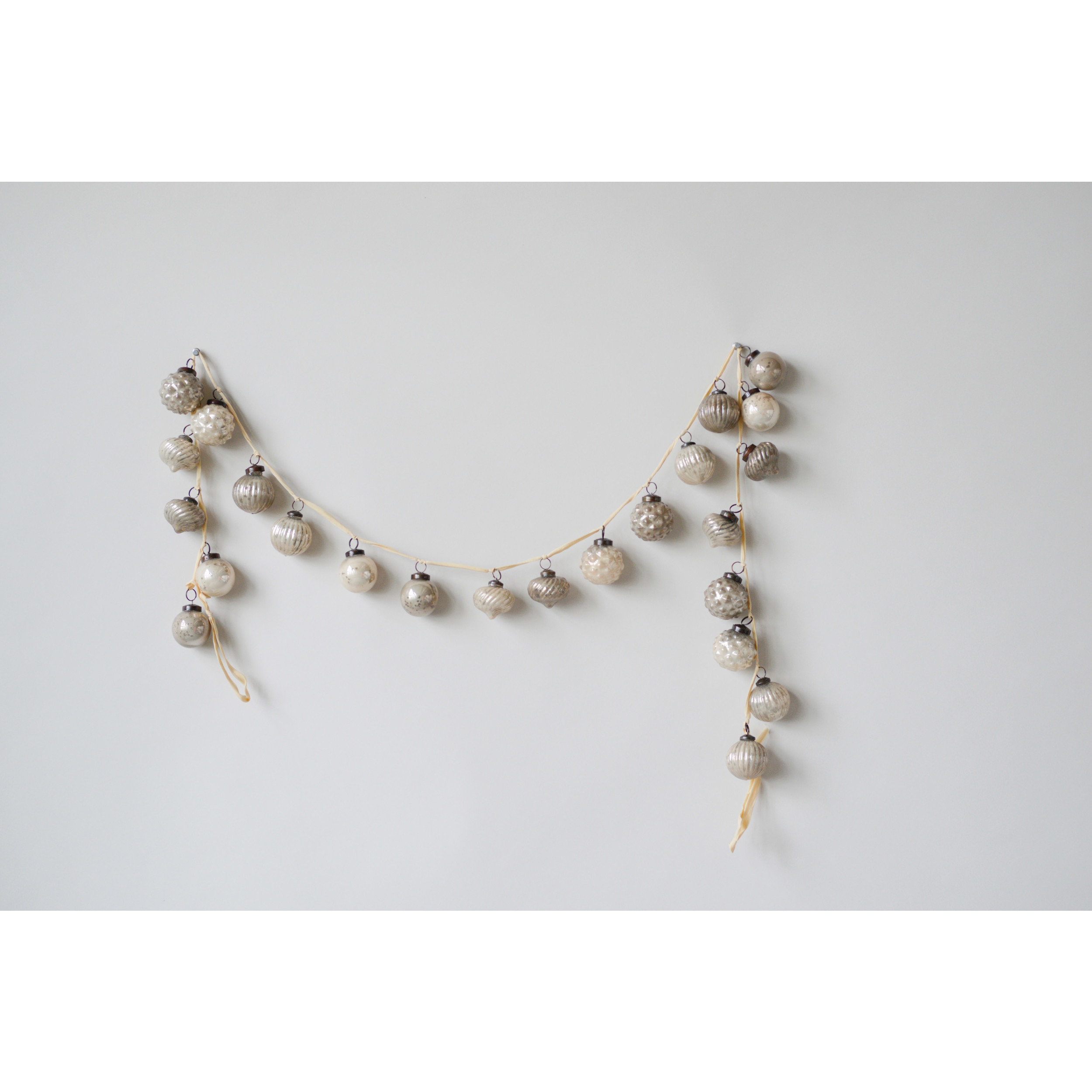 Enjoy the various designs of these glass ornaments. They are attached to a fabric string and create an antique garland to be envied by all. Lay it on a surface around larger items, add to a decorative piece filled with other items, hang on a fireplace mantel or in front of a window.
