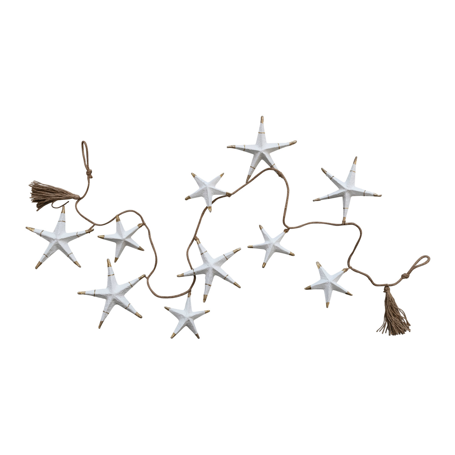 Catalog Name: 72"L Hand-Painted Recycled Paper Mache Star Garland w/ Gold Foil & Tassels in Kraft Box, White